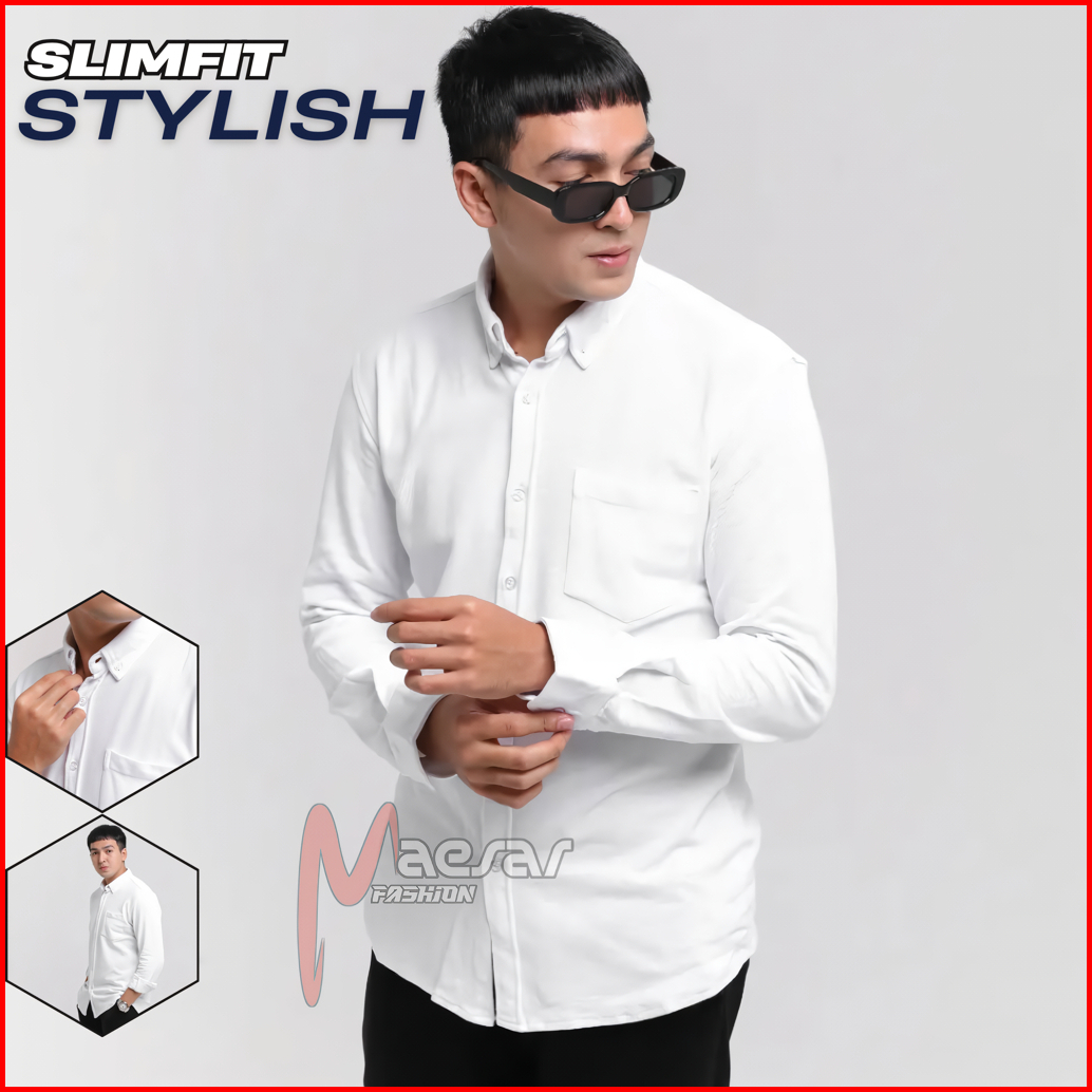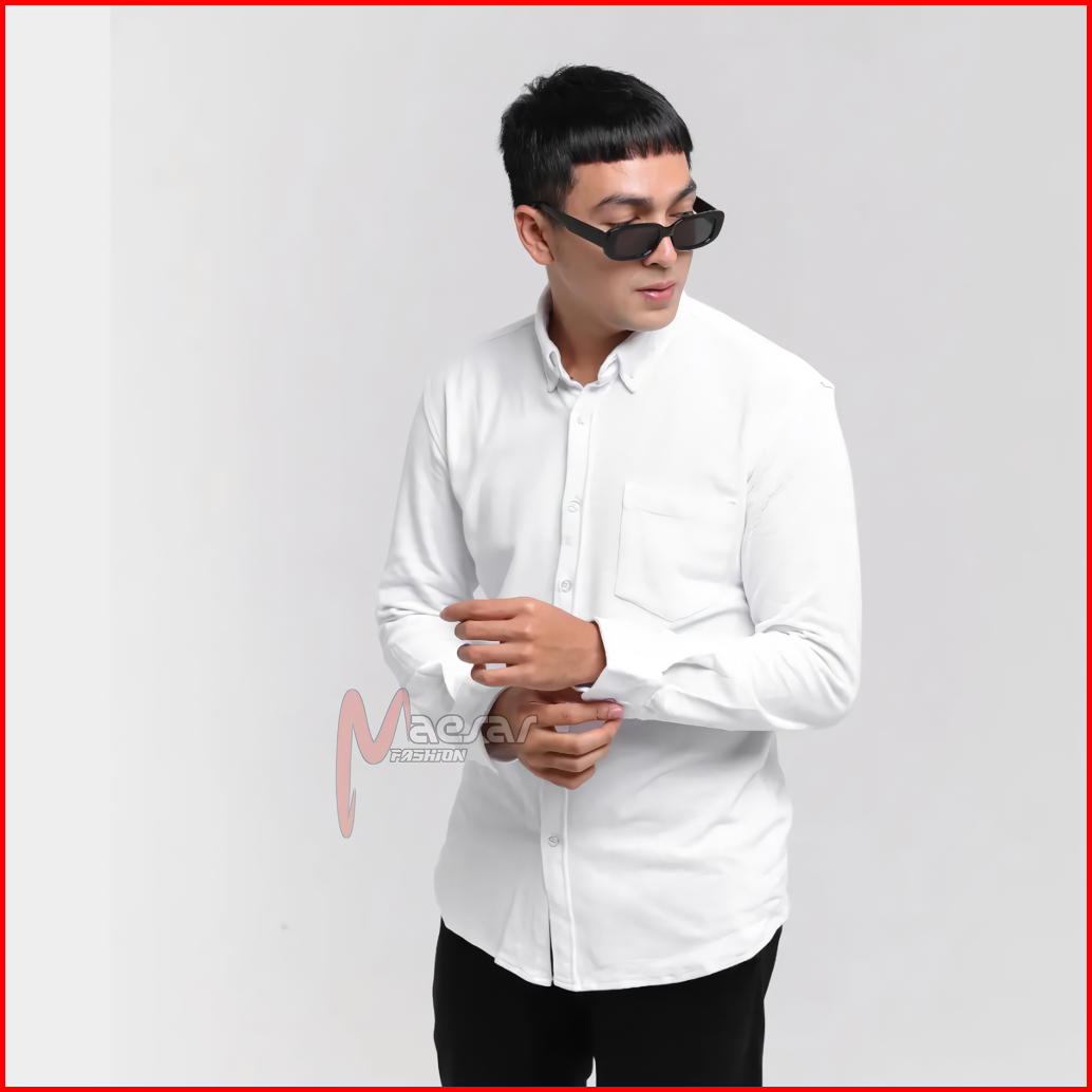 Maesar Fashion Kemeja Putih Pria Lengan Panjang Premium Bahan Katun Kemeja Putih Polos Panjang Kemeja Putih Pria Lengan