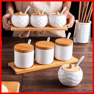 Guci Bumbu Keramik Guci Bumbu Dapur Set 3 3 Guci 1 Alas Kayu