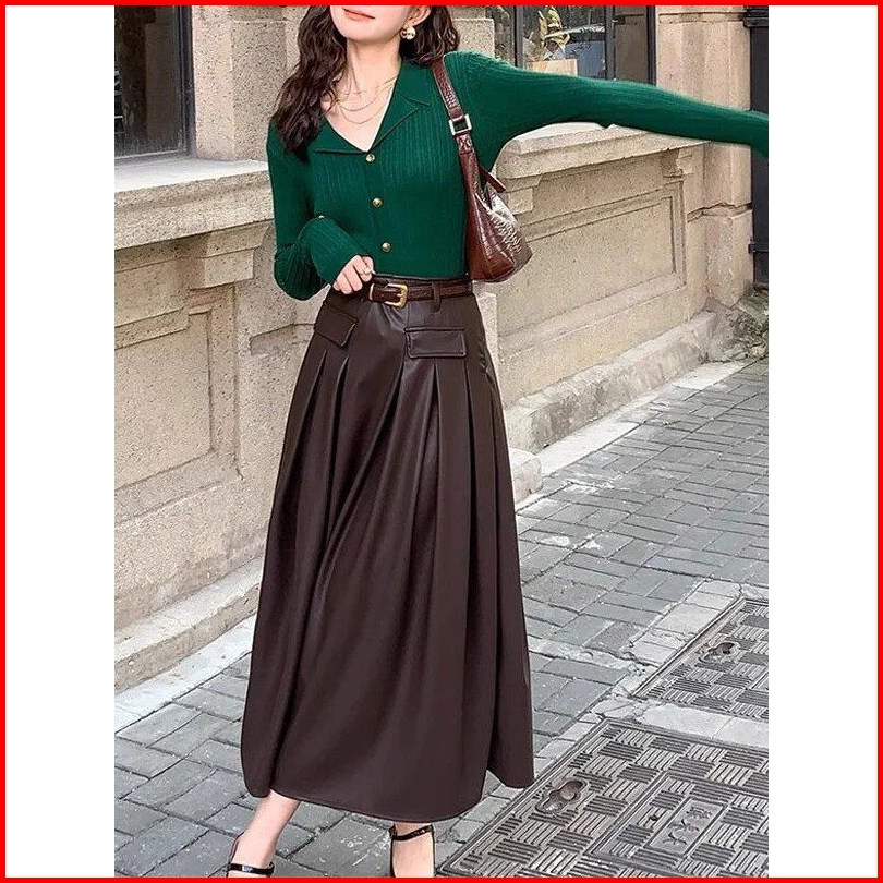Rok Kulit Wanita Kanzea Vintage Terbaru Rok Kulit Leather Skirt Rok Kulit Rok Kulit Panjang Rok Kulit Wanita Terbaru