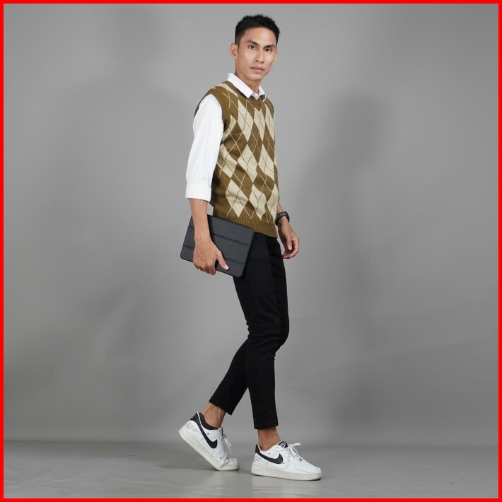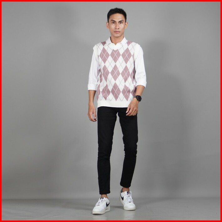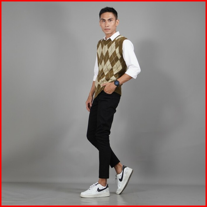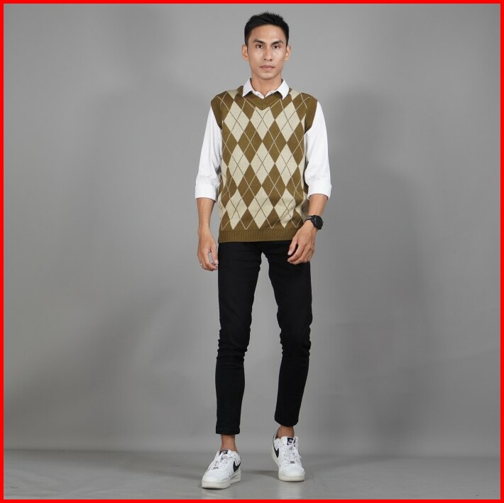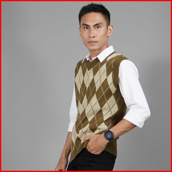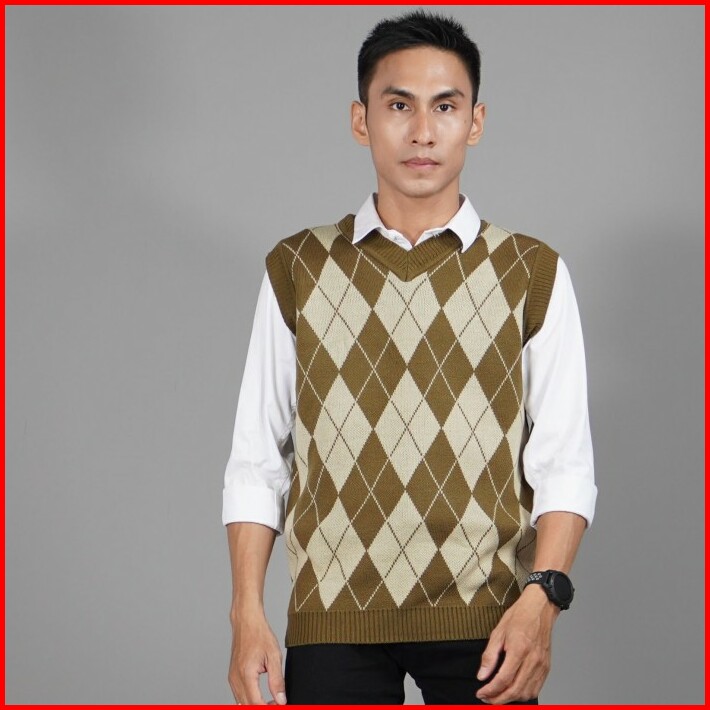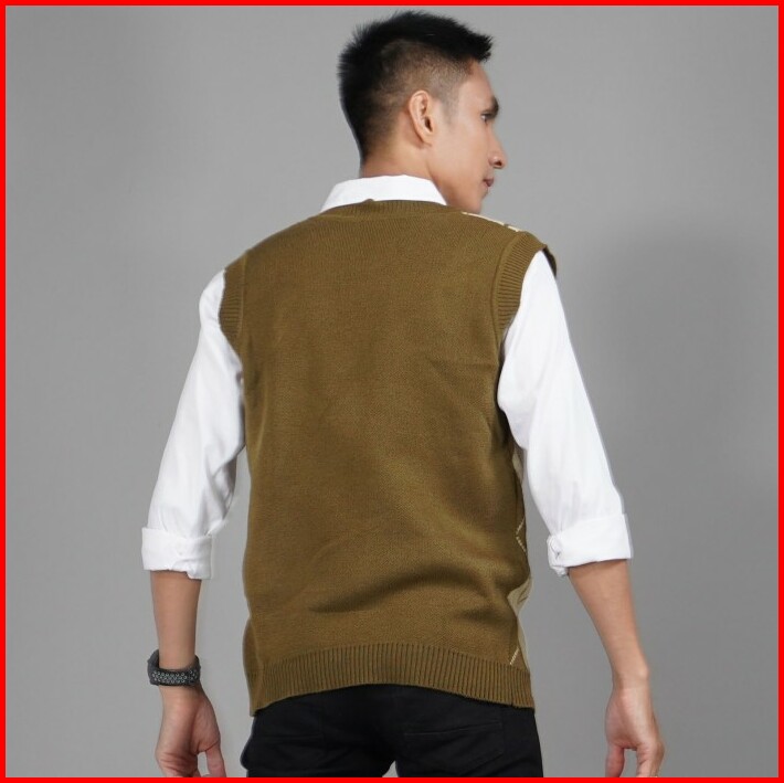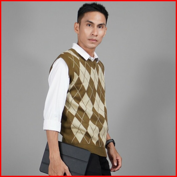 Okechuku Rompi Pria Vest Pria Motif Kotak Vest Rajut Pria Rompi Custom