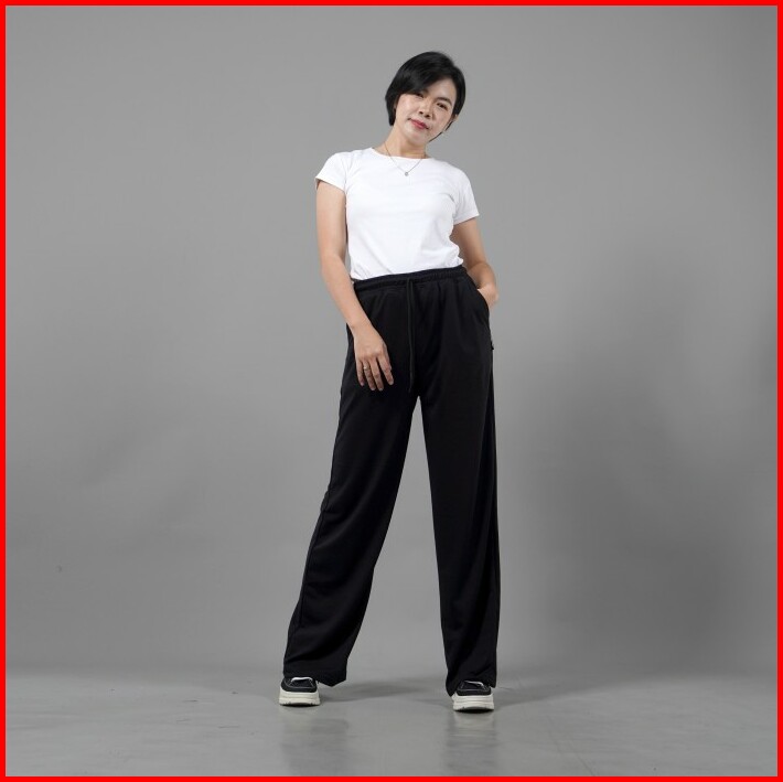 Okechuku Ria Celana Panjang Wanita Kekinian Loose Pants Wanita Celana Hitam
