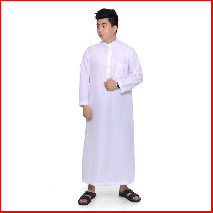 Jubah Gamis Pria Saudi Putih Polos Lengan Panjang Premium