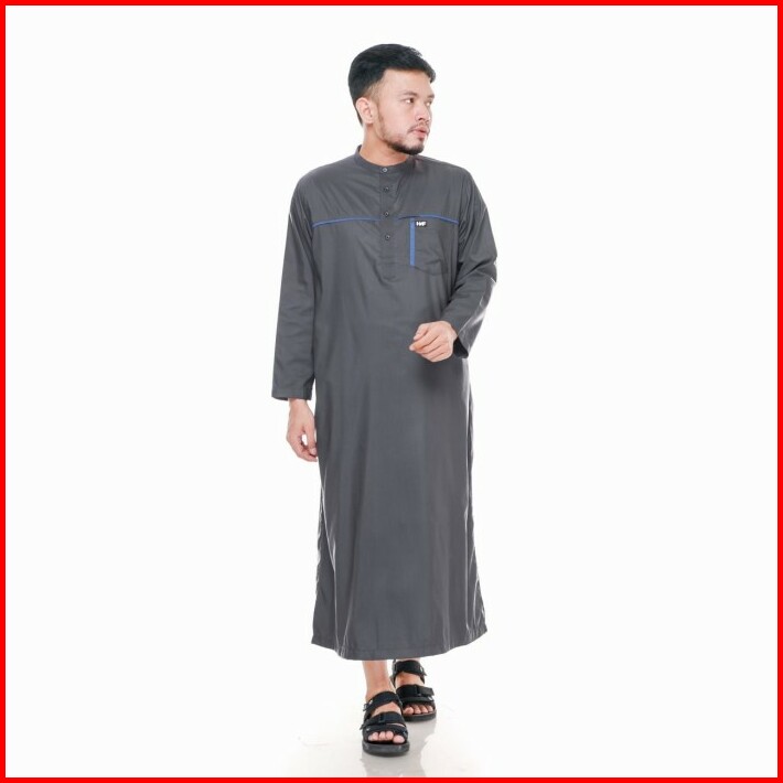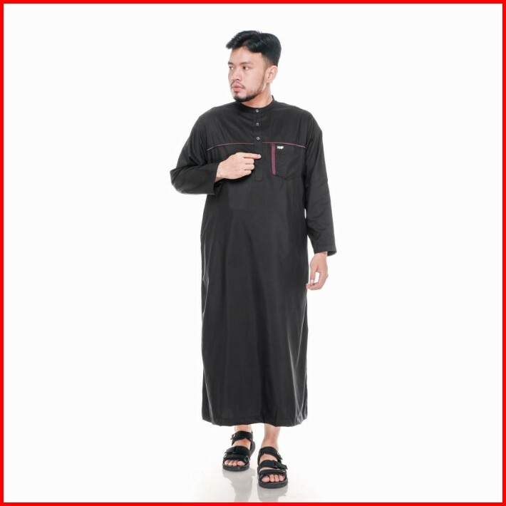 Baju Jubah Gamis Pria Muslim Laki Dewasa Hanif List Lengan Panjang