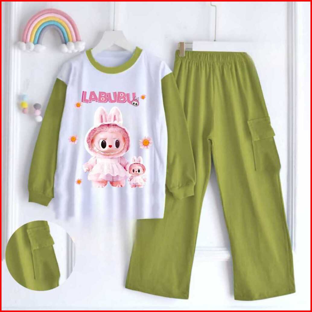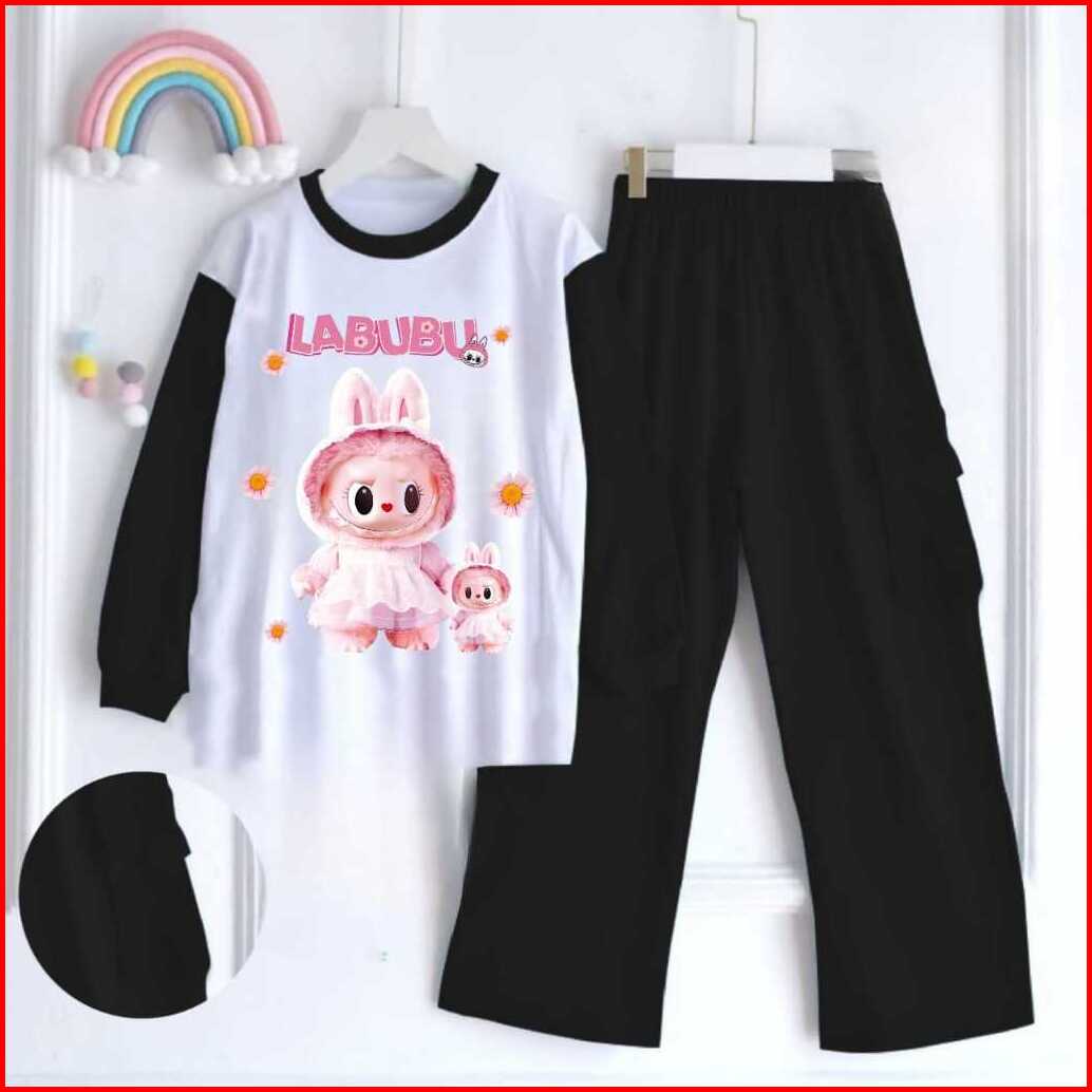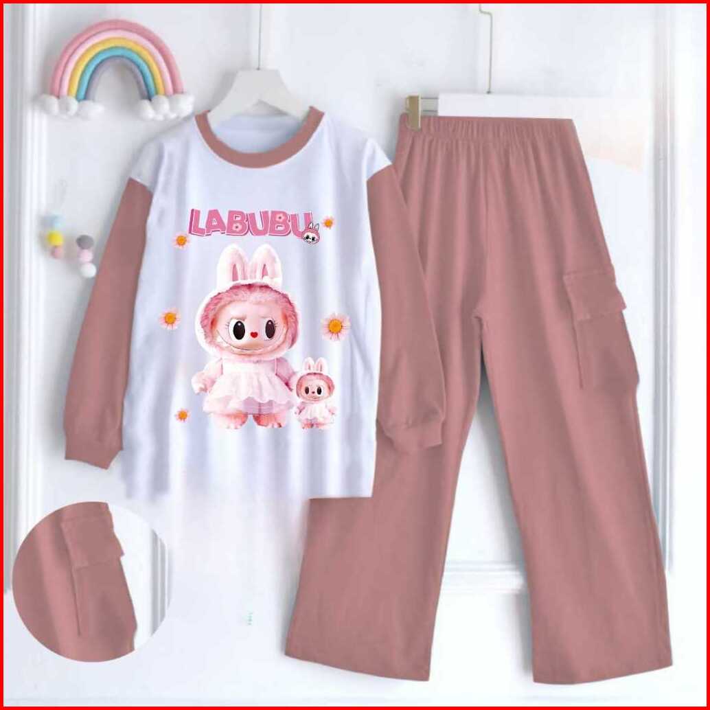 Setelan Labubu Princes Setelan Anak Perempuan Terbaru Bahan Crinkle Airflow Usia 3-12 Tahun