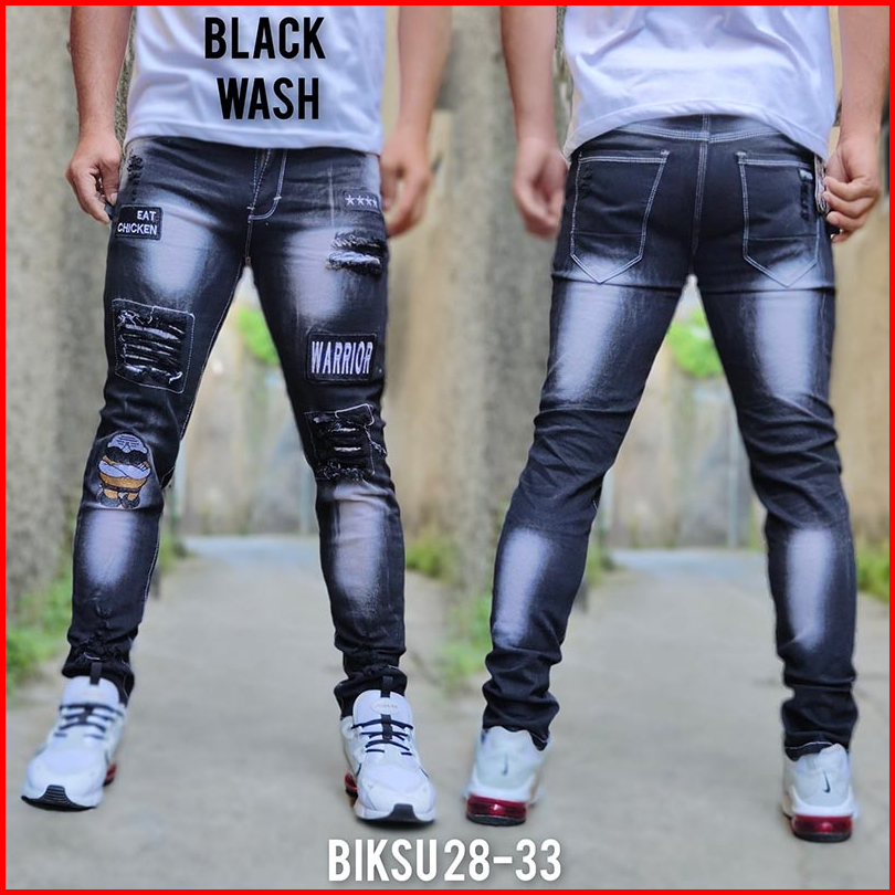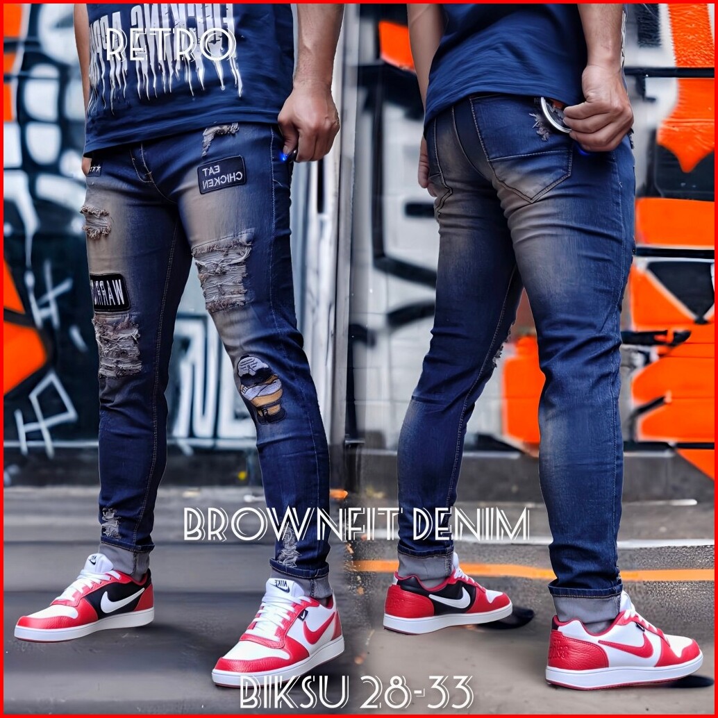 Celana Sobek Pria Jeans Emblem Biksu