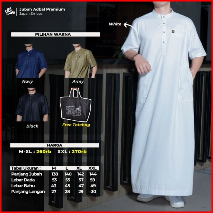 Jubah Laki Laki Jubah Pria Lengan Pendek Slimfit Pria Dewasa Adbal Embos