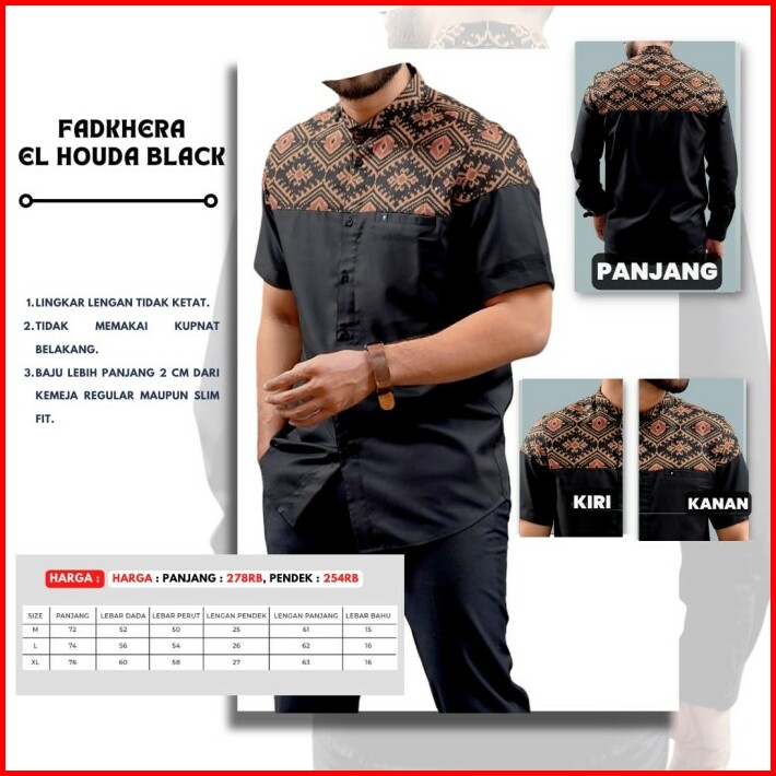 Kemaja Pria Baju Formal Kemko Kemeja Koko Model El Huada Black