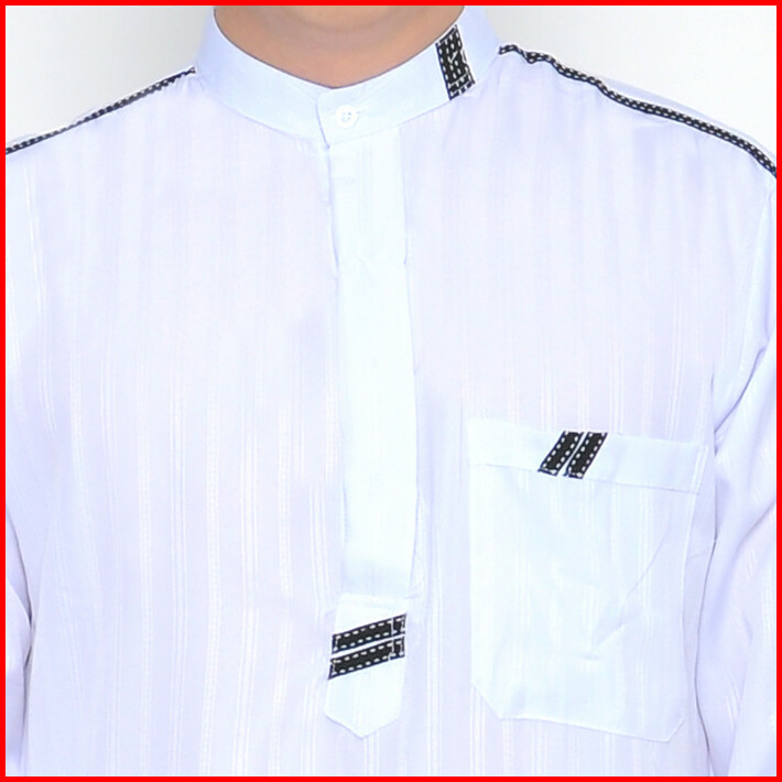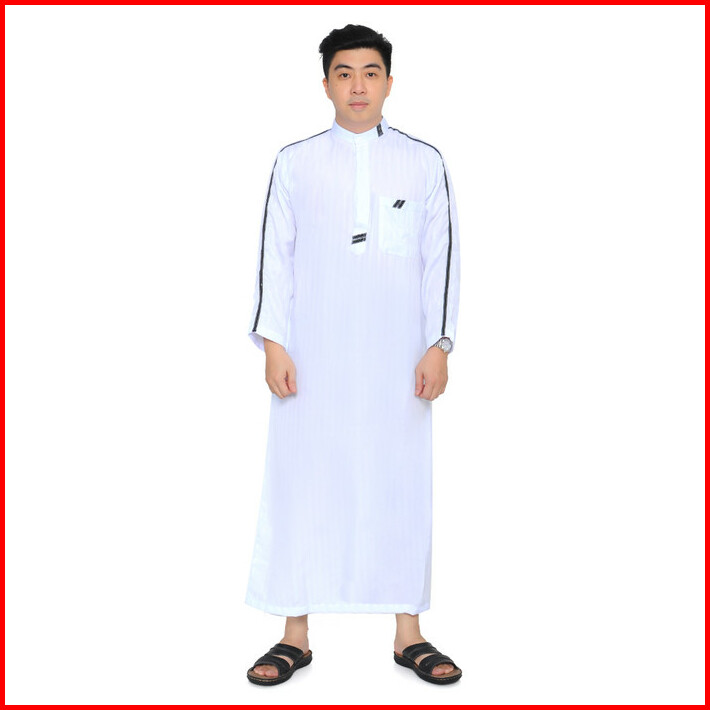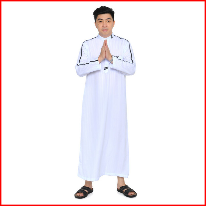 Jubah Gamis Pria Putih Lengan Panjang List Hitam Premium