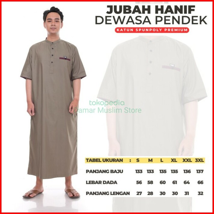 Baju Jubah Gamis Pria Muslim Laki Dewasa Hanif Lengan Pendek Premium