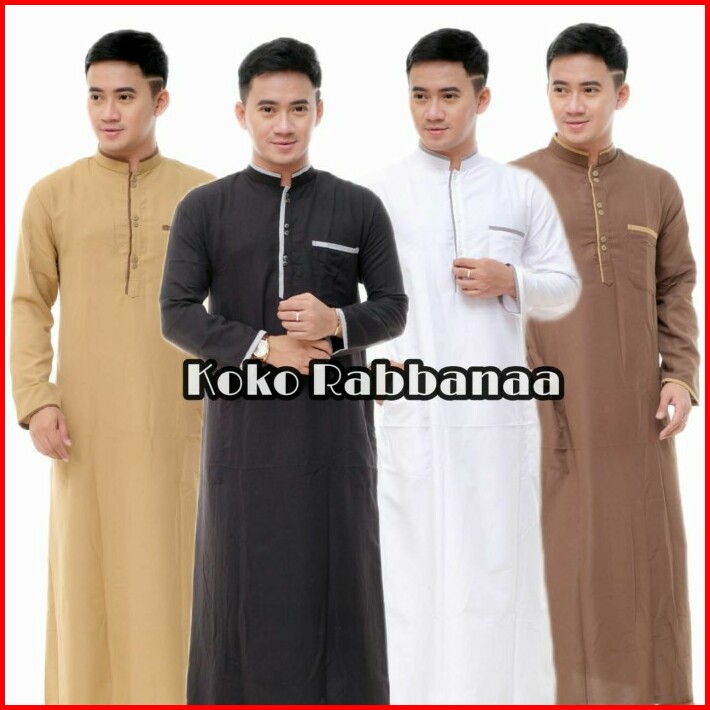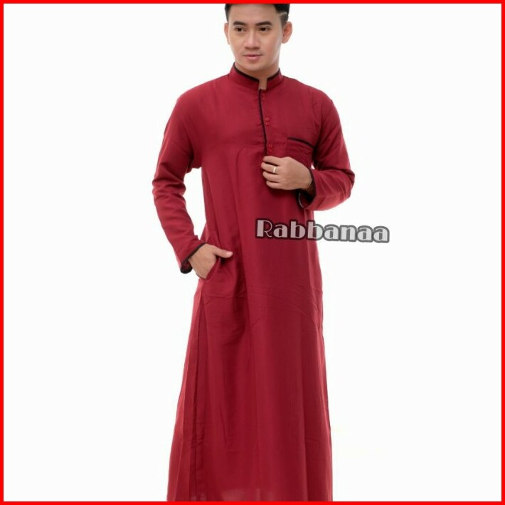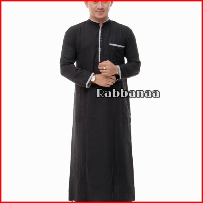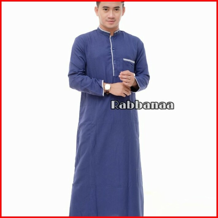 Baju Jubah Gamis Pria Kombinasi Lis Lengan Panjang Elegan