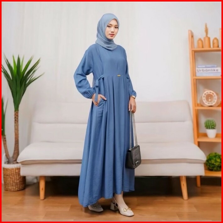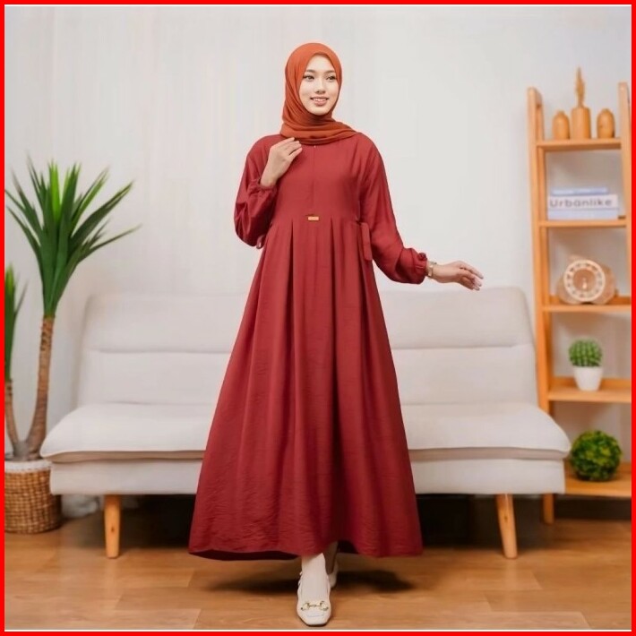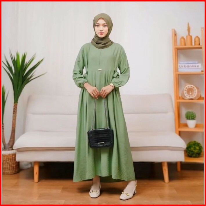Gamis Cringkel Chika Dress Maxy Ready Bahan Cringkel Airflow Polos
