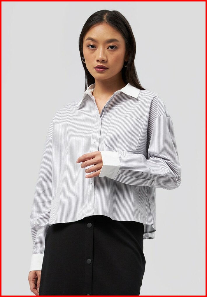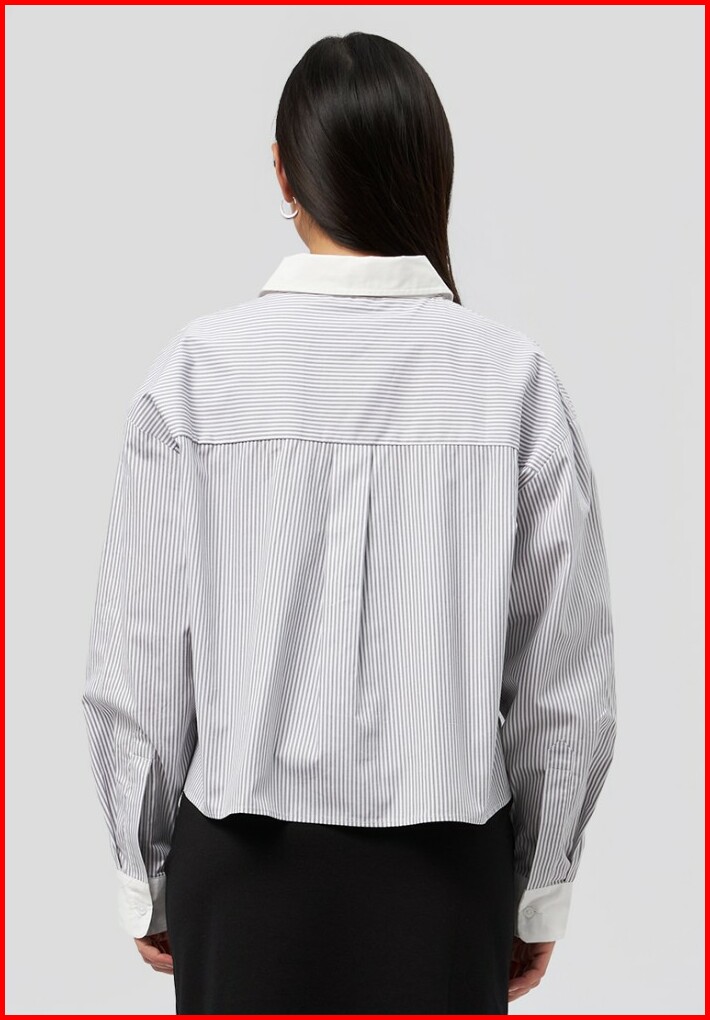 Executive Long Sleeve Stripes Crop Shirt 5-blwksg224j035 Grey