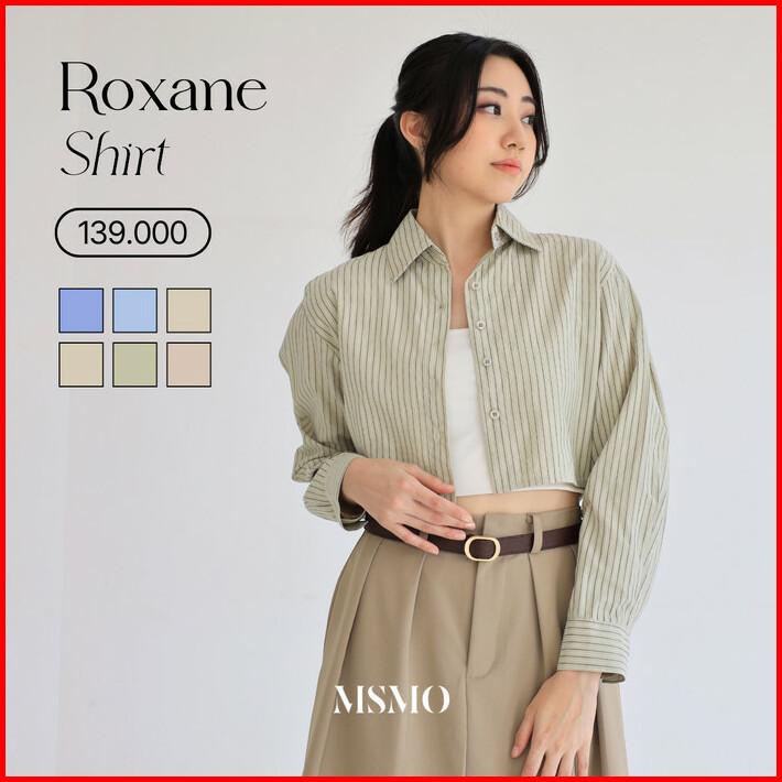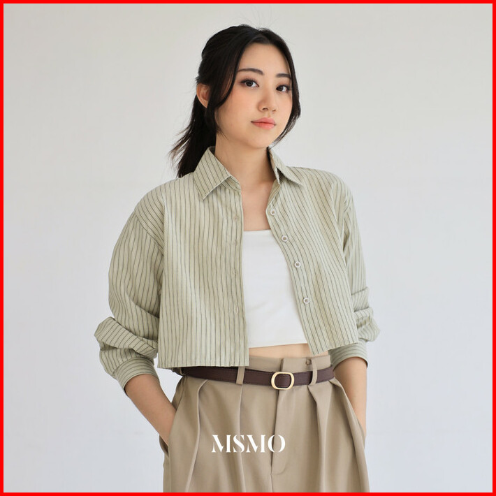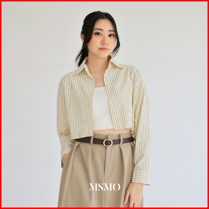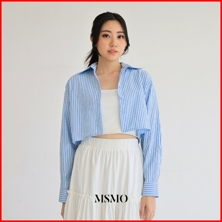 Msmo Roxane Stripes Shirt Crop Shirt Longsleeve Kemeja Kemeja Wanita Atasan Wanita