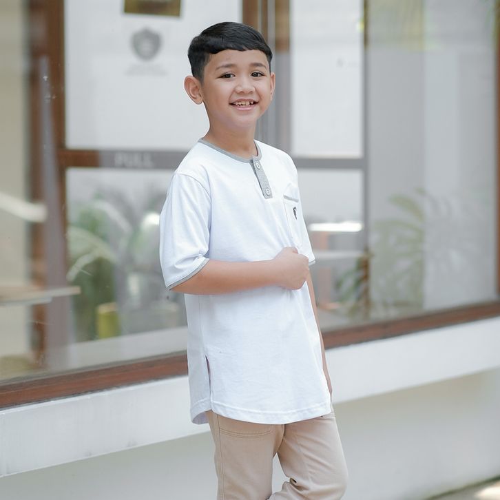 KHORUMMAH Kurta Badar Kids - Kaos Kurta Anak Laki Laki Kerah Shanghai / Kaos Kurta Anak Premium
