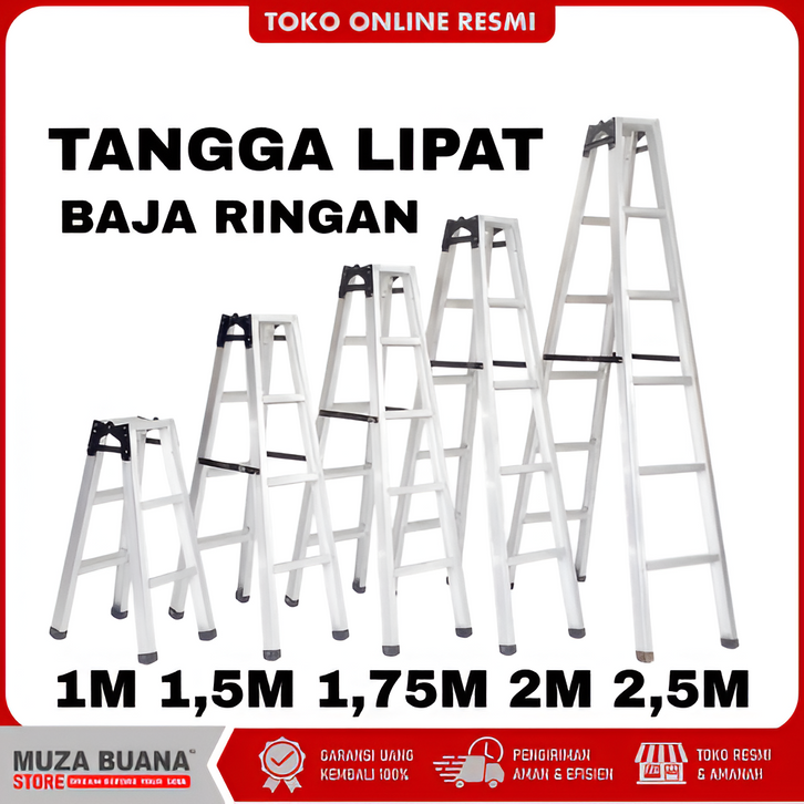 MUZA BUANA | Tangga Lipat Engsel Jumbo Super Kuat Ukuran 1 M / 1,5 M / 1,75 M / 2 M /2,5 M Bahan baja