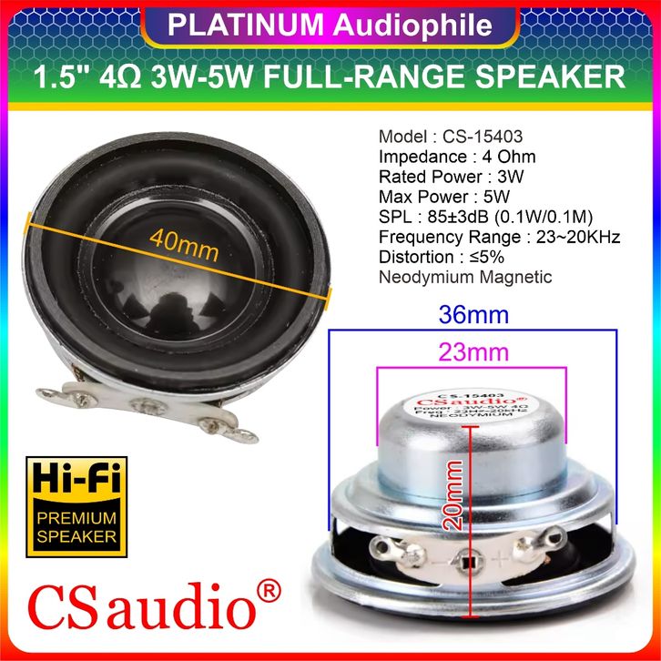 Speaker 1.5 inch Fullrange 4 ohm 3W-5W 40mm Hifi Speker Full range 1.5" CS Audio CS-15403