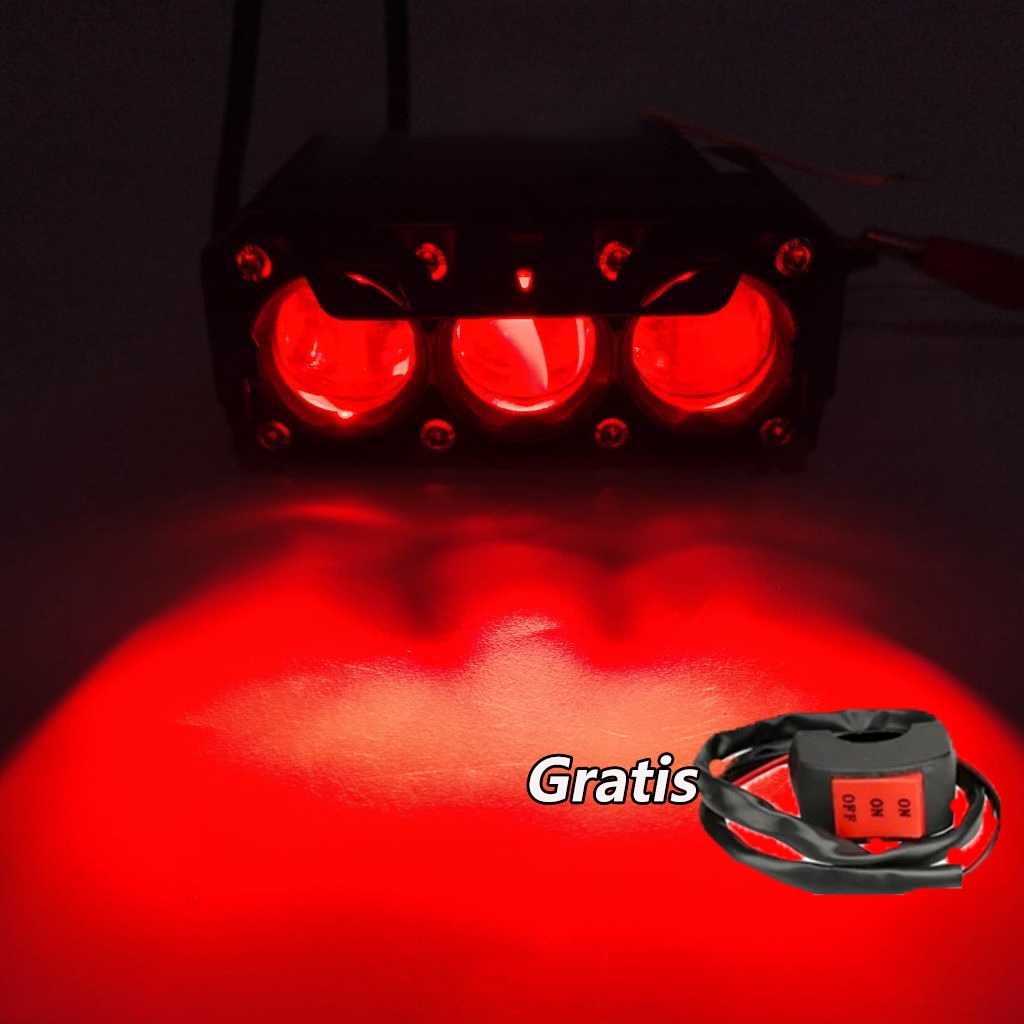 (Hadiah gratis)Lampu Tembak LED Laser SQL 3 Mata/4Mata Laser Foglamp Mobil Motor lampu tembak Laser Gun DEVIL Putih Kuni