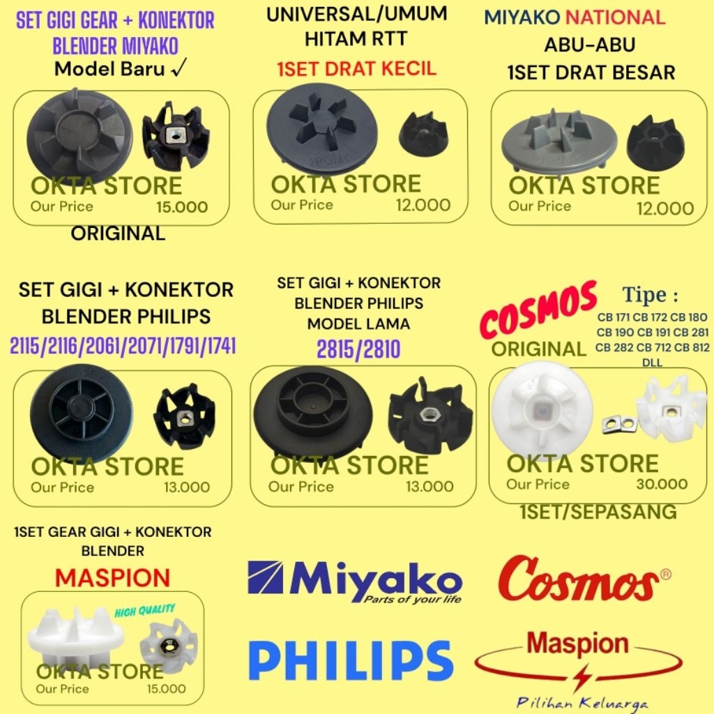 FULLSET GEAR GIGI + KONEKTOR MESIN BLENDER MIYAKO PHILIPS COSMOS MASPION NATIONAL UNIVERSAL RRT