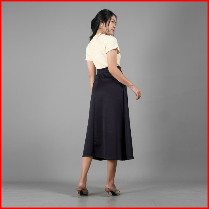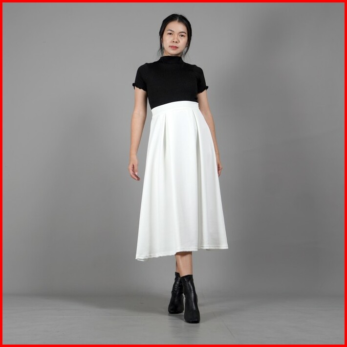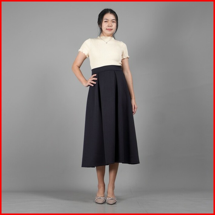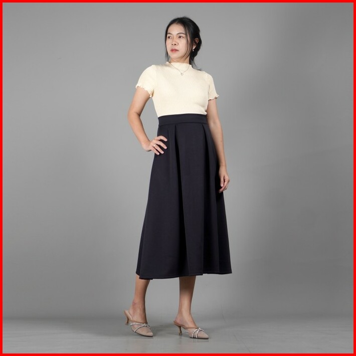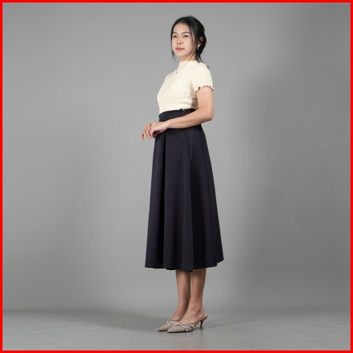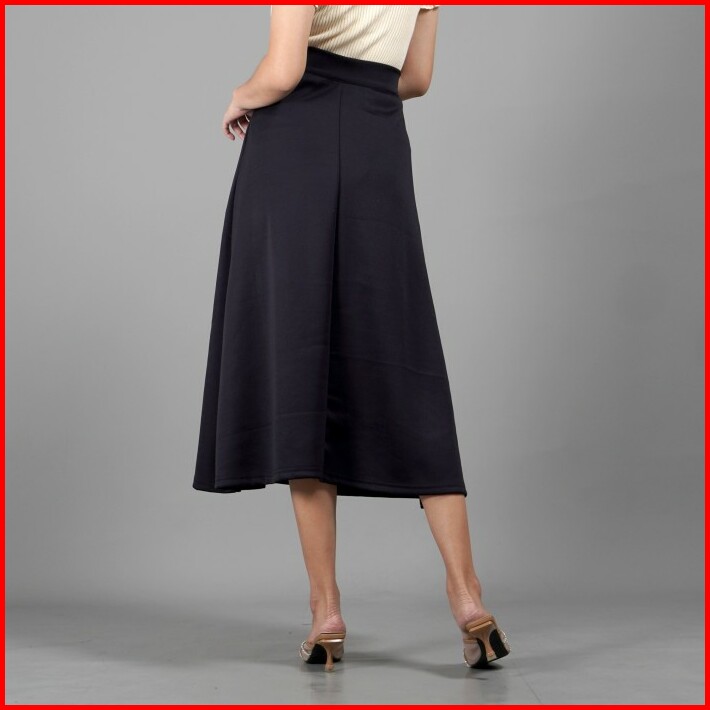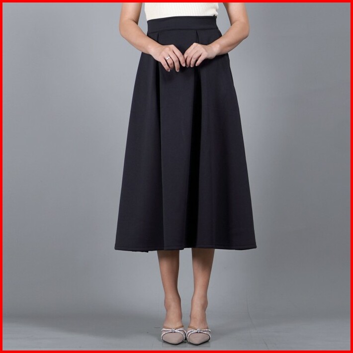 Okechuku Rebeca Rok Hitam Panjang Polos Rok Wanita Korea A Line Hitam