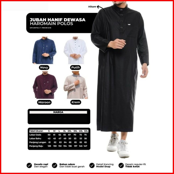 Baju Gamis Jubah Pria Laki Dewasa Hanif Haromain Polos Lengan Panjang