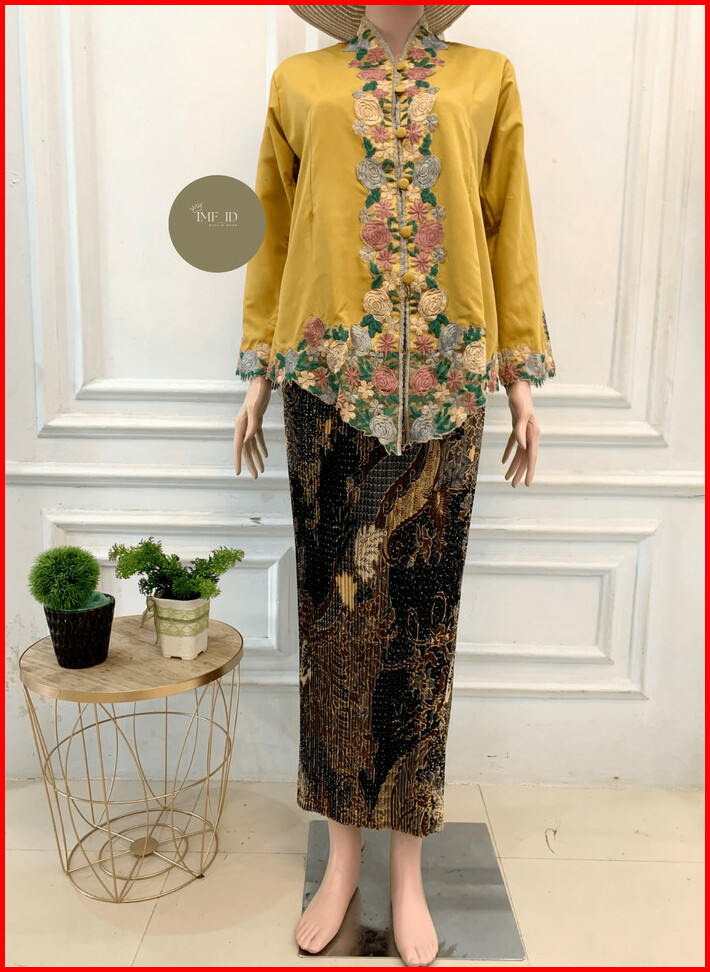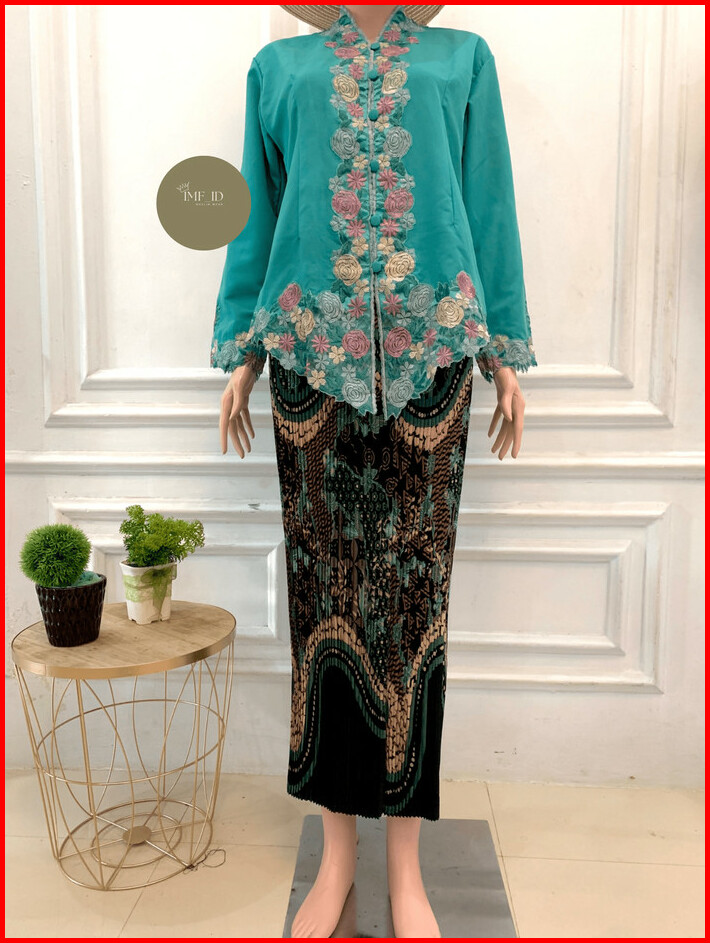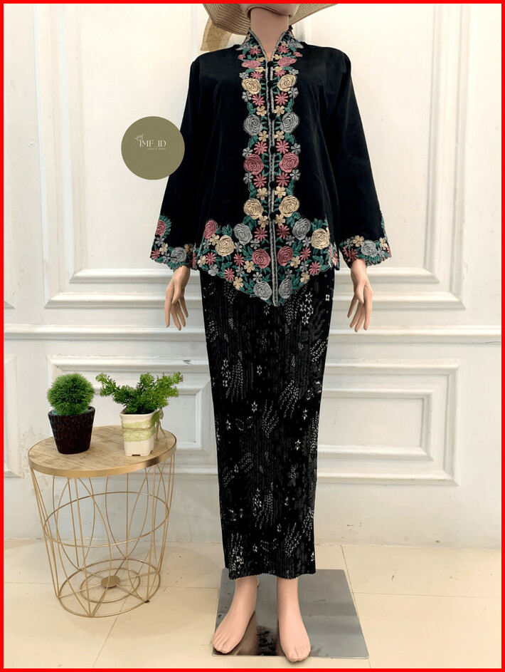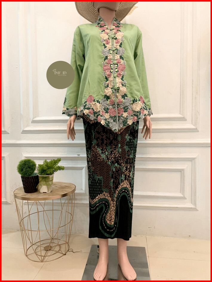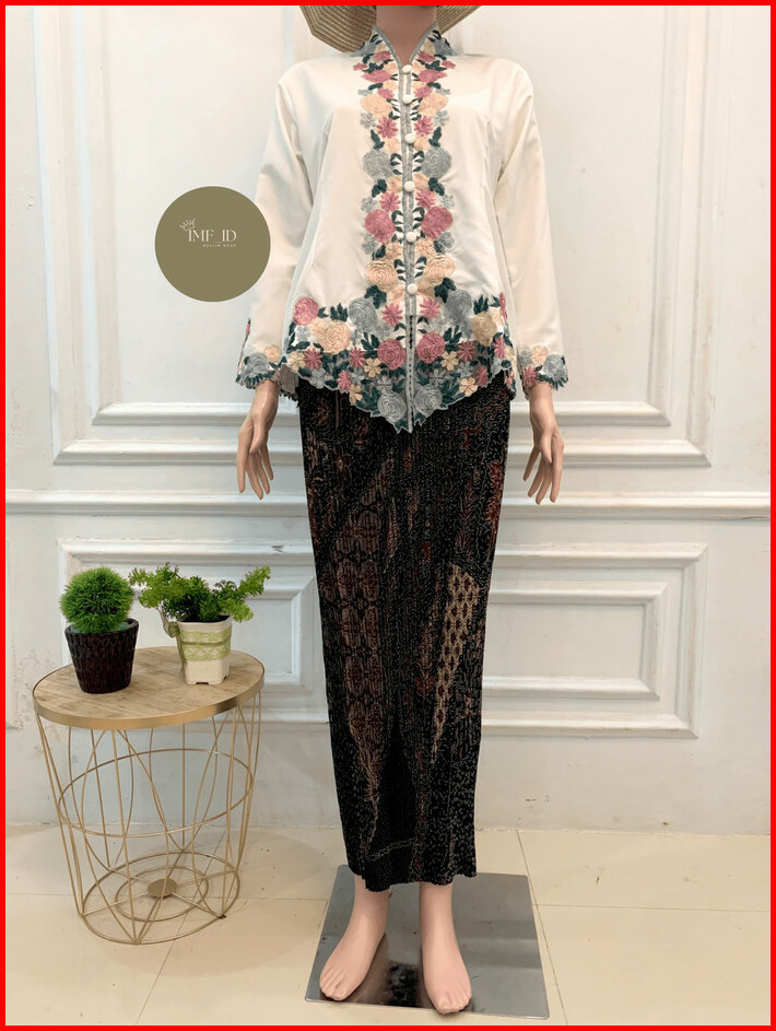 Kebaya Encim Bordir Motif Bunga Tangan Panjang Katun Mikro Premium