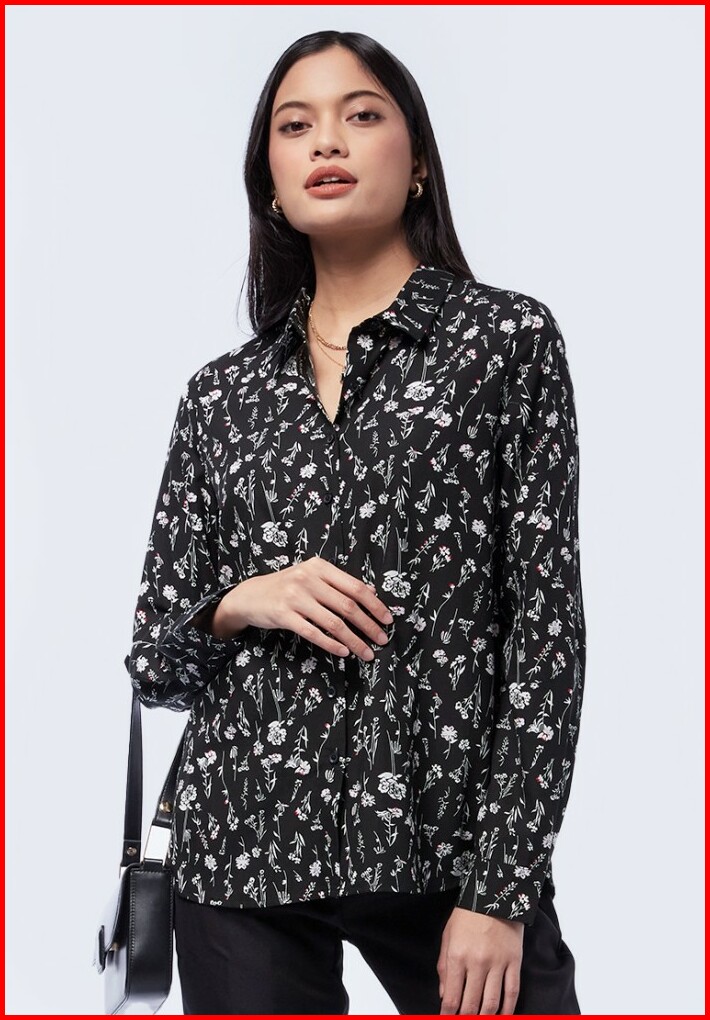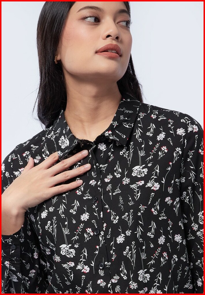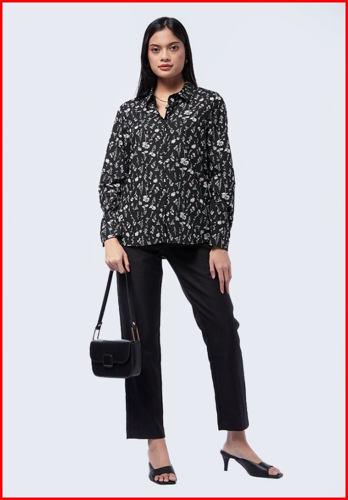 Executive Printed Long Sleeve Blouse 5-blwksg224a086 Black