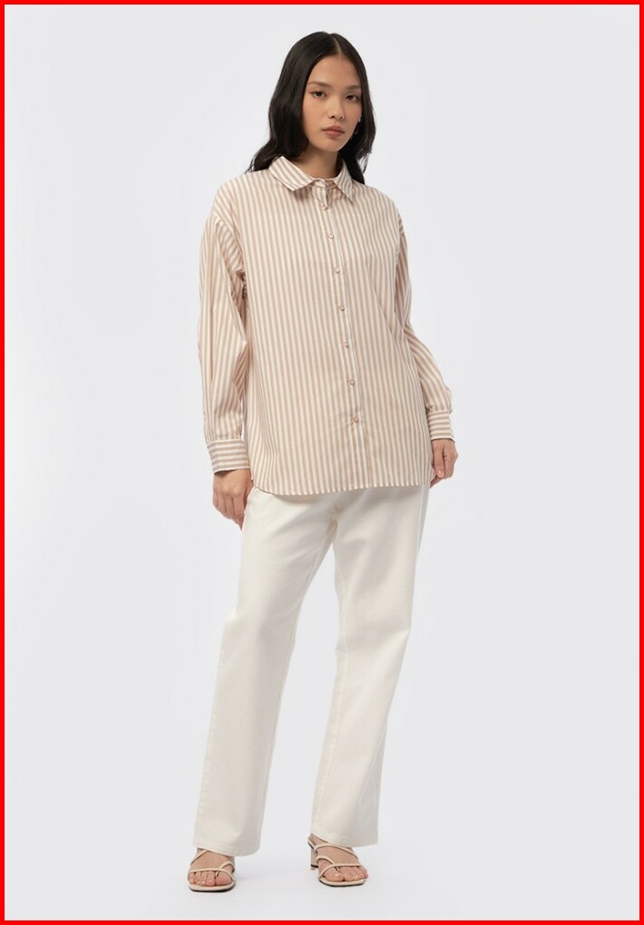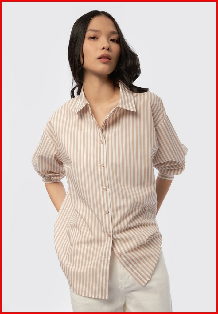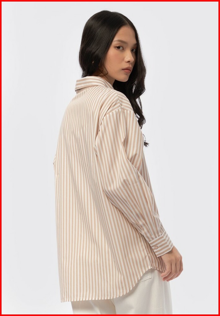 Executive Long Sleeve Stripes Blouse 5-blwksg124g046 Beige