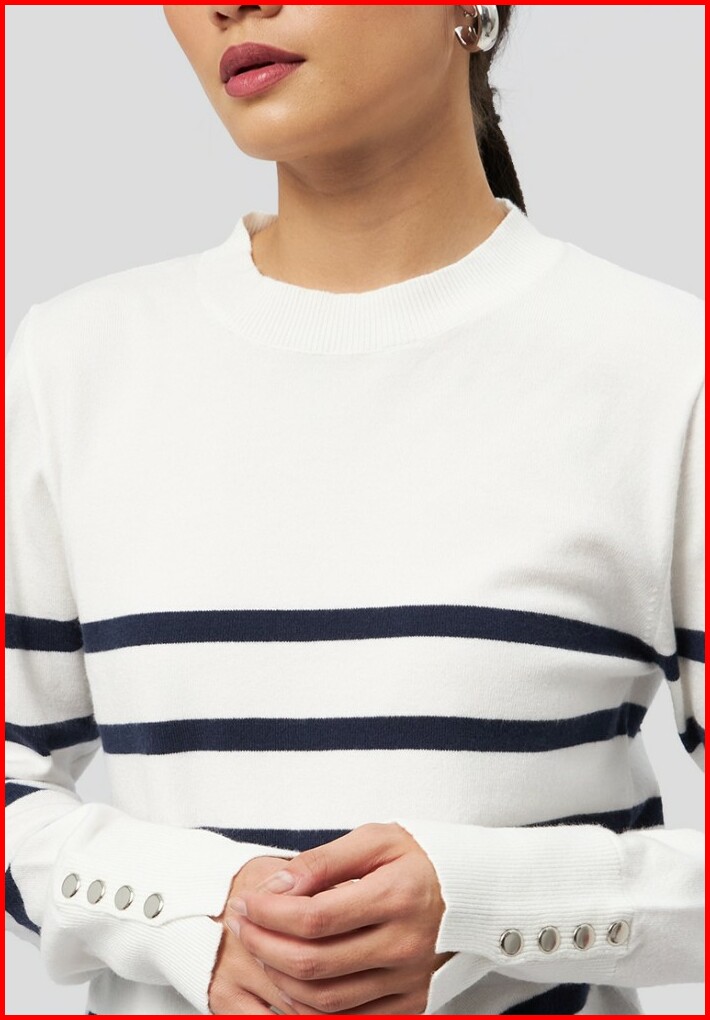 Executive Long Sleeve Stripes Knit Top 5-swgkca224j122 Off White