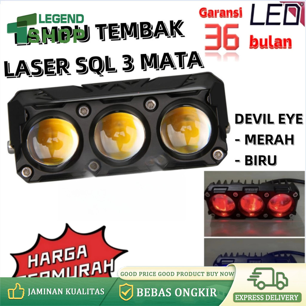 LAMPU TEMBAK LASER/LAMPU TEMBAK MINI 3 Mata/TANPA KIPAS/SUPER BRIGHT HI LOW 35 WATT LAMPU TEMBAK MOTOR MOBIL/FOGLAMP 3 M