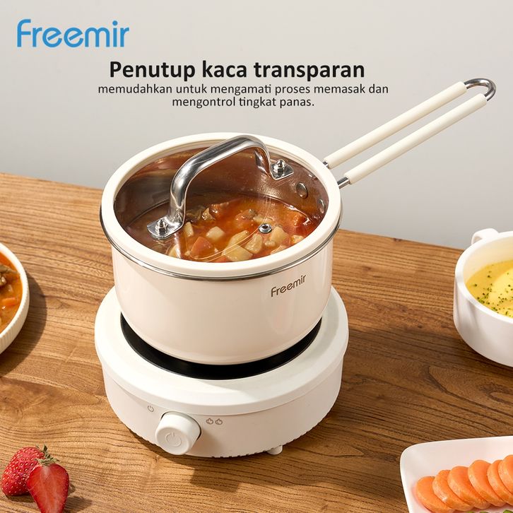 freemir 0-Coating Panci Susu 16 cm Stainless Steel Saucepan + Tutup Kaca Anti Lengket