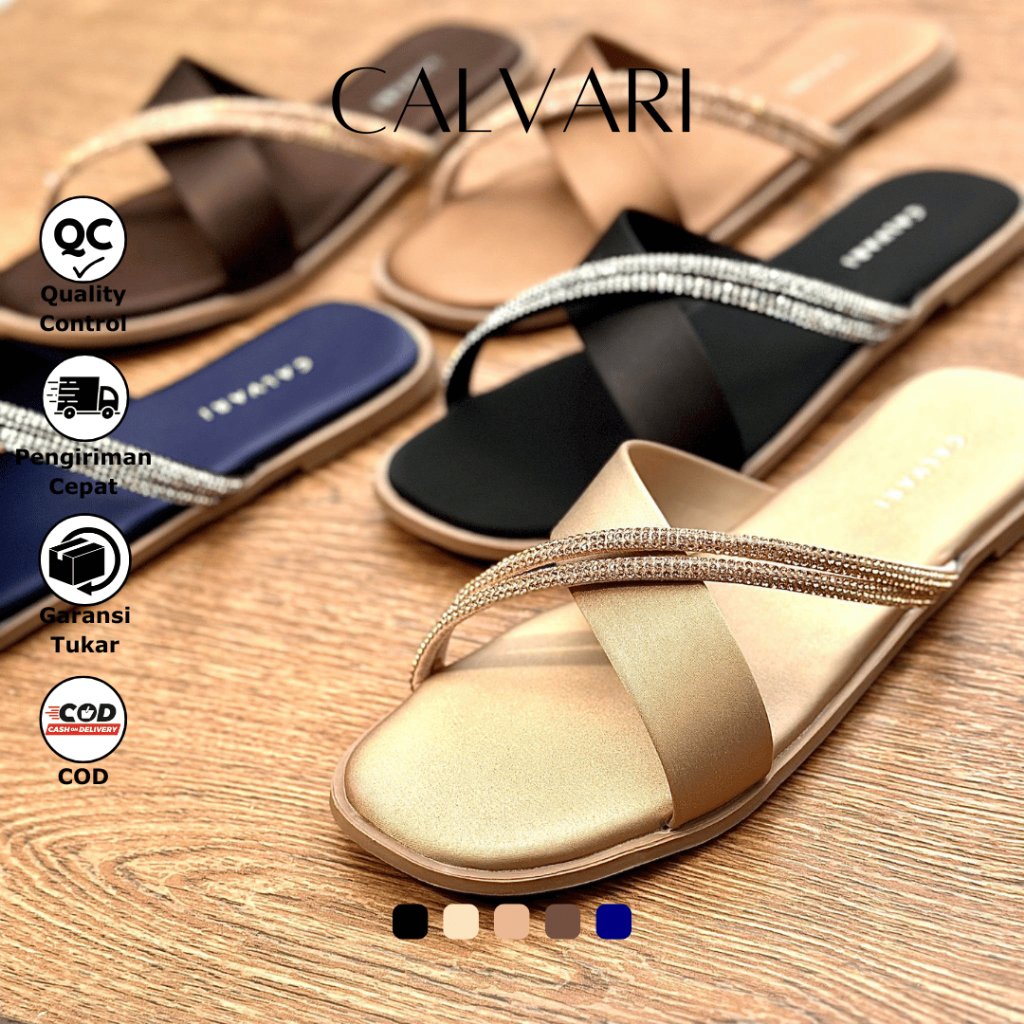 Sandal Wanita Rose Tali Teplek Kasual By Calvari Sendal Kekinian Original
