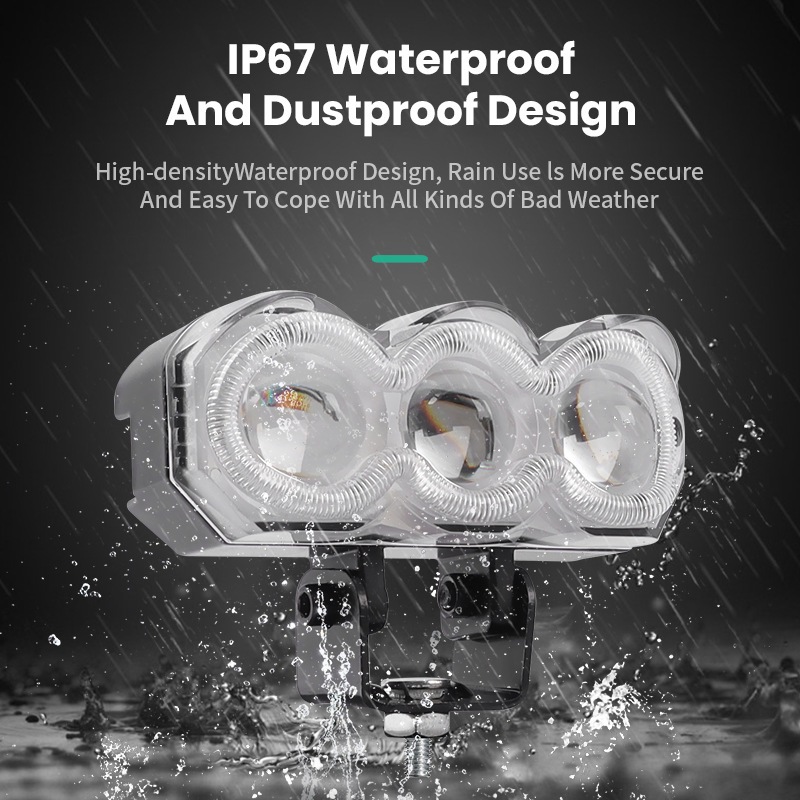Lampu tembak laser FOGLAMP SQL 3 mata super terang HI LO 80watt dua warna putih dan kuning dengan lampu sorot bukaan ber