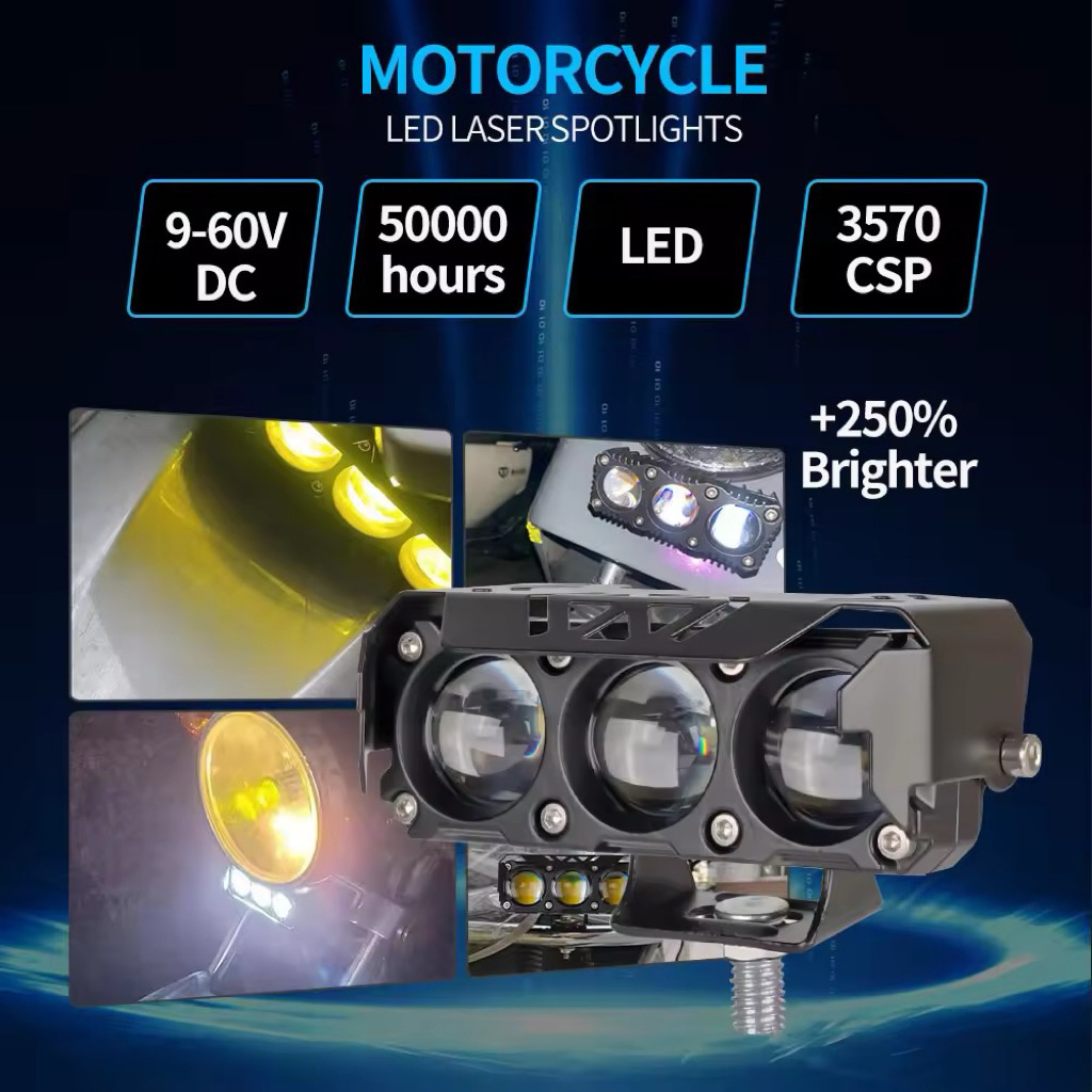Lampu tembak laser sql 3 mata Putih Kuning Waterproof super terang