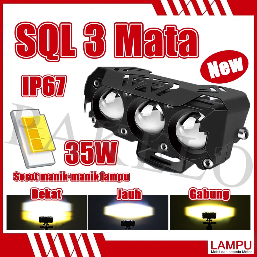 LAMPU TEMBAK LASER/LAMPU TEMBAK MINI SQL 3 Mata/TANPA KIPAS/SUPER BRIGHT HI LO 35 WATT LAMPU TEMBAK MOTOR MOBIL/FOGLAMP