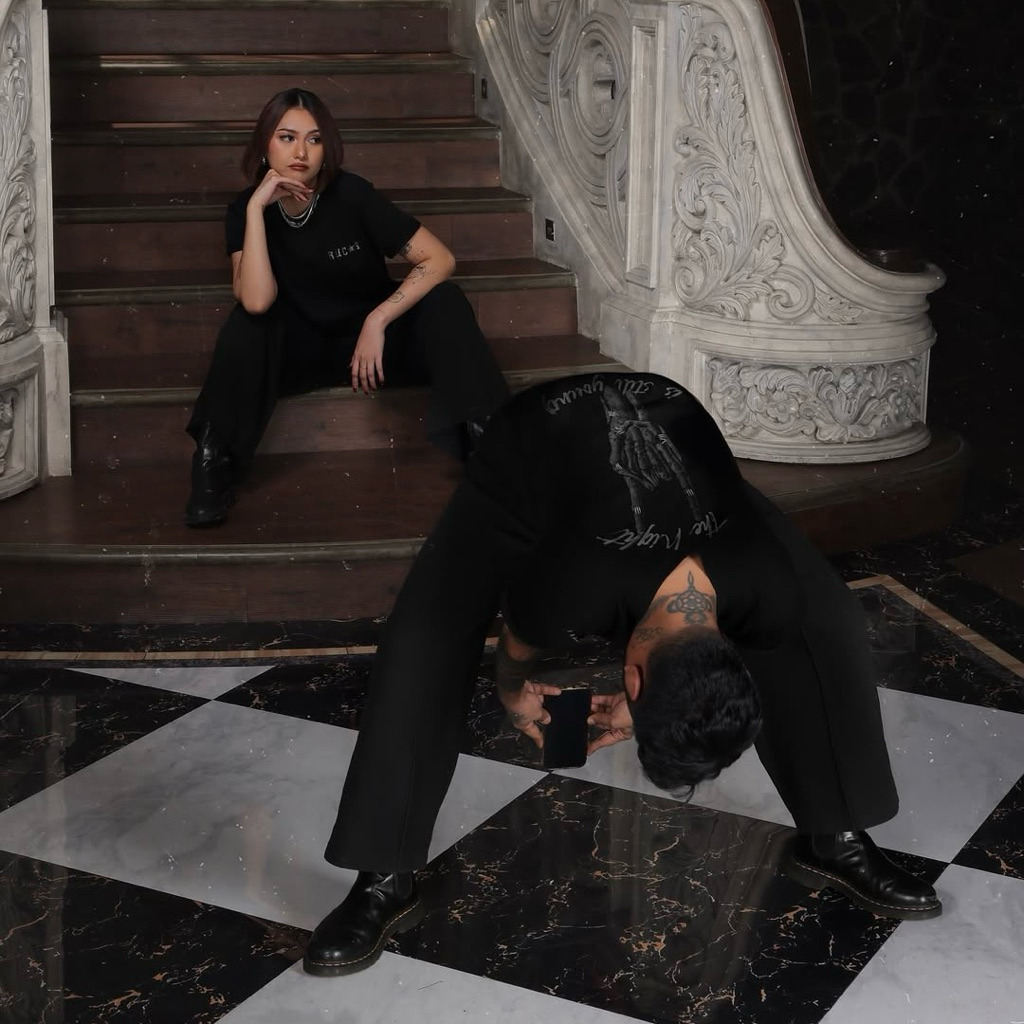 [Star] RUCAS "Rockstar Skeleton" Hand Tee Black