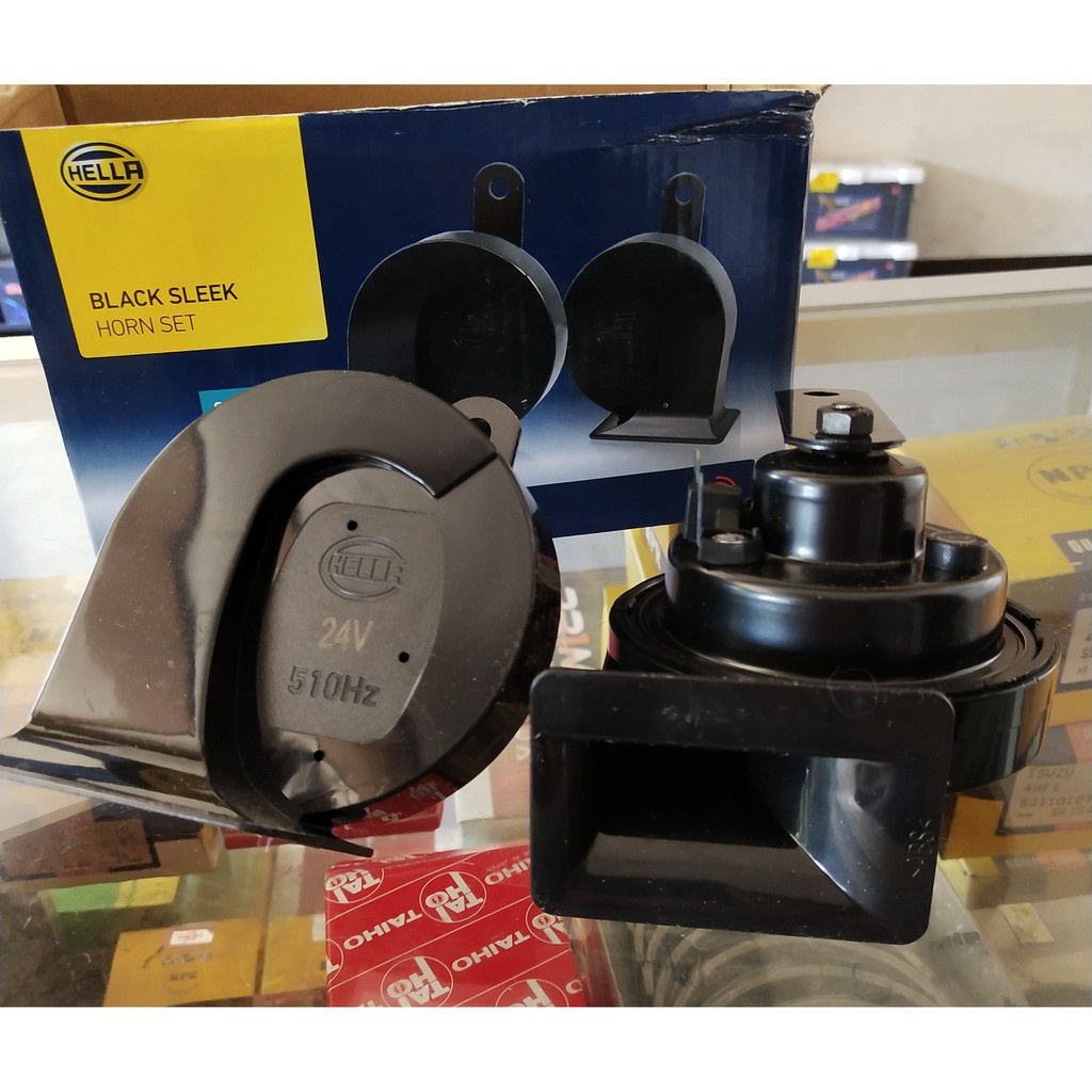 KLAKSON KEONG ORIGINAL HELLA SLEEK 24 V HITAM UNTUK TRUK BUS DUMP TRUCK AKI 2 SUARA KENCANG KUALITAS TERBAIK AWET
