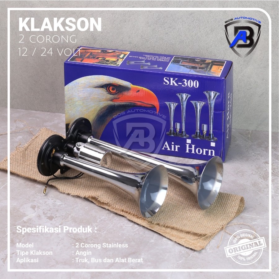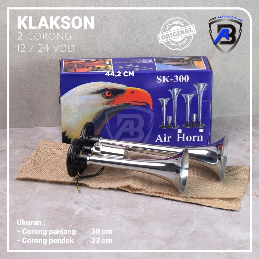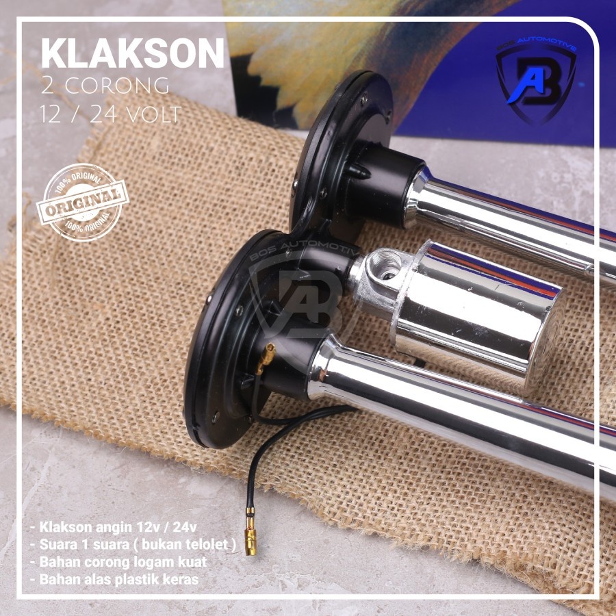 Klakson 2 Terompet Universal / Klakson Angin Mobil Bus / Truk / Container 2 Corong 24V / 12V