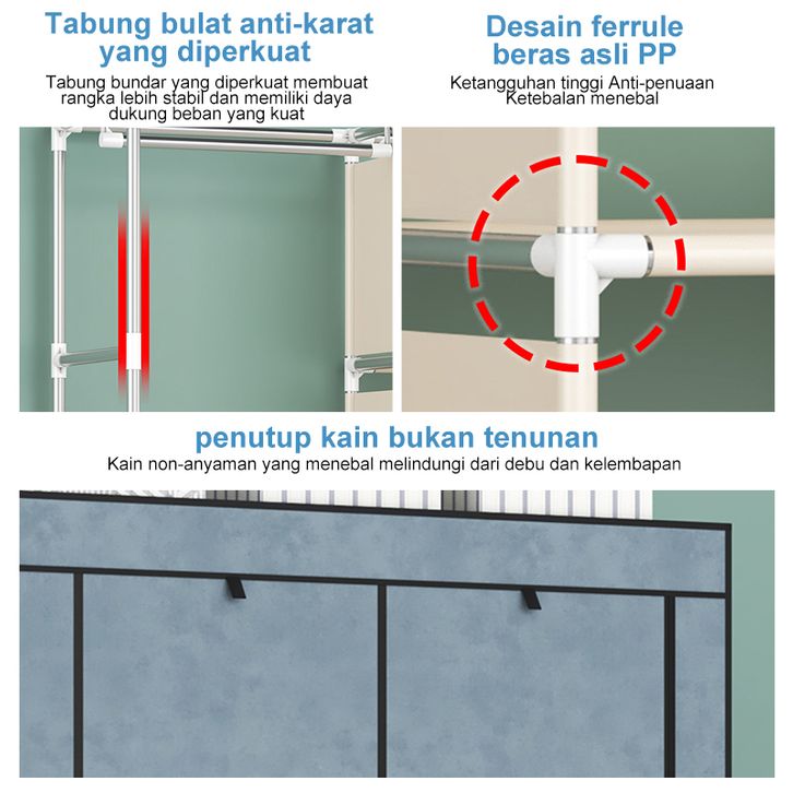 Lemari Pakaian Kain Portable Anti Debu Rak Tempat Penyimpanan Barang Wardrobe Serbaguna Garansi 3 Tahun