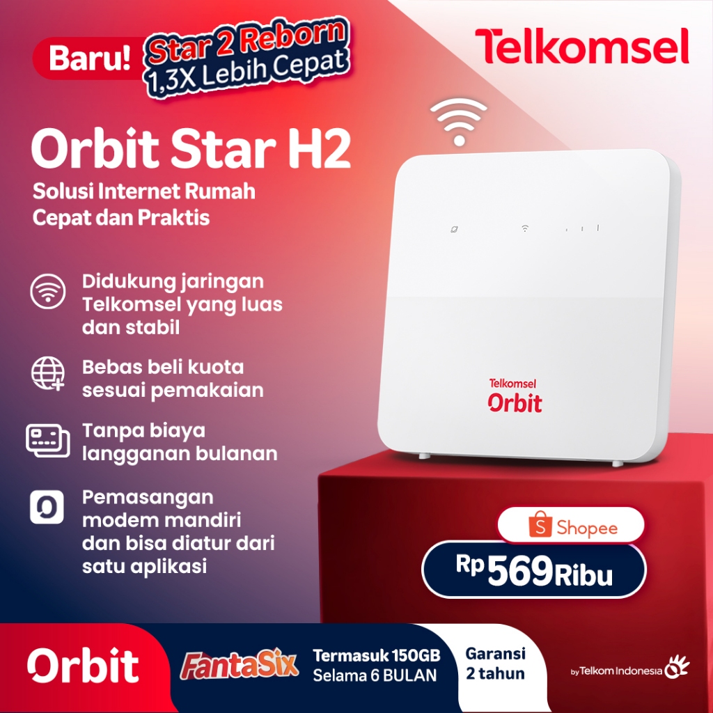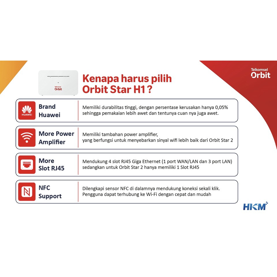 Telkomsel Orbit Star H2 Modem WiFi 4G Huawei Free Perdana Kuota