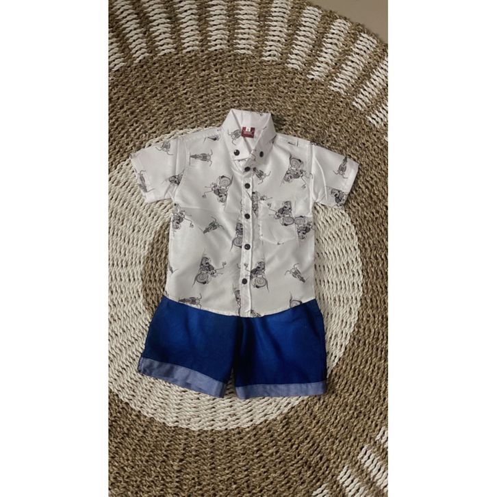 SETELAN ANAK KEMEJA MOTIF DAN CELANA JEANS PENDEK USIA 1-8 tahun. Dari bb 10-33 kg | SETELAN KEMEJA MOTIF ANAK