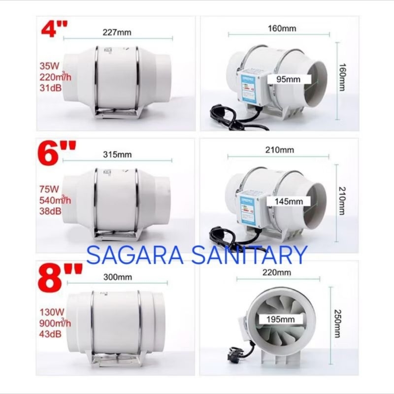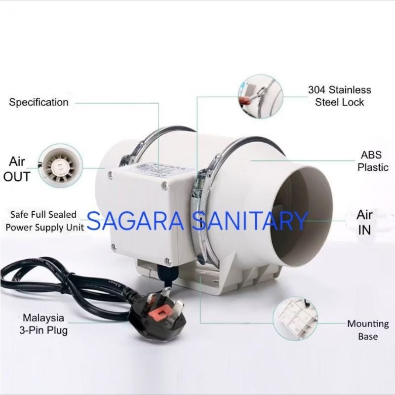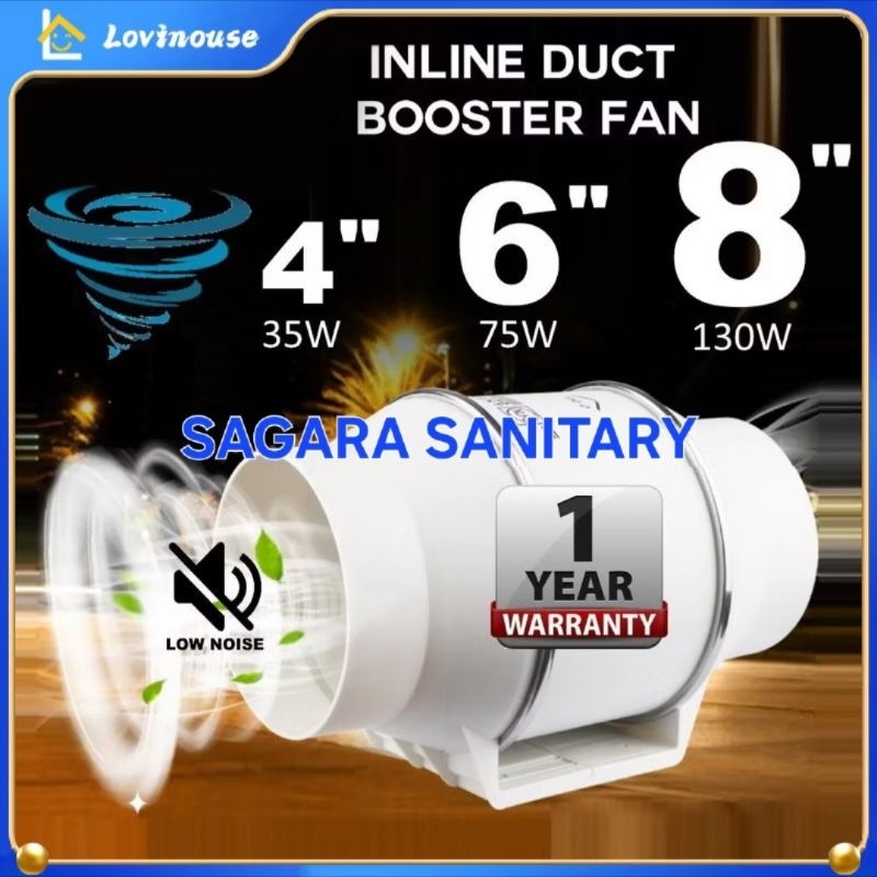 Inline duct booster fan 4 in / 6 in / 8 in blower eksos penghisap asap dapur kuat kencang