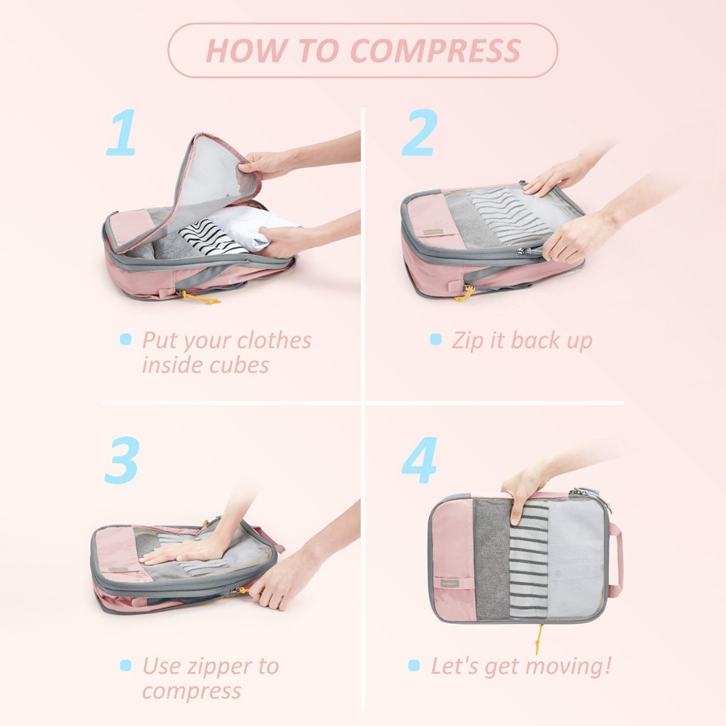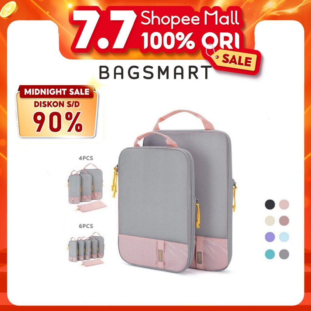 BAGSMART Tas Travel Praktis Bag Organizer Pouch Set Storage Bag Luggage Bag Tas Dalam Koper Pink 2pc