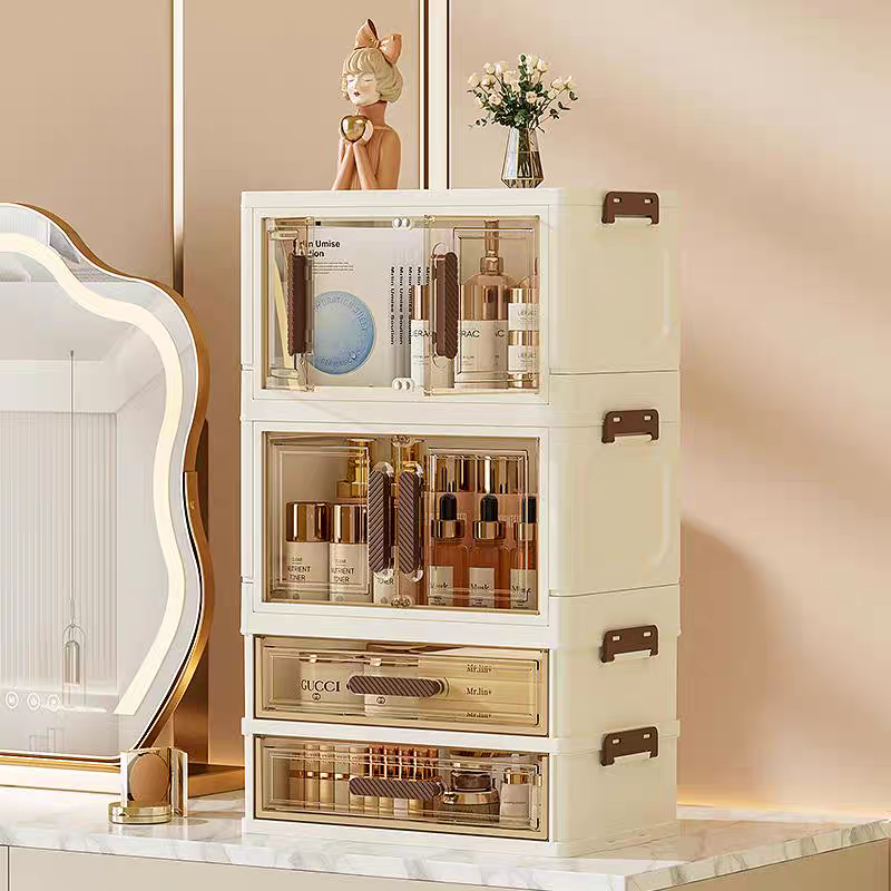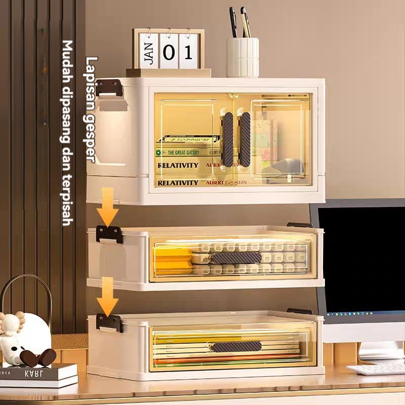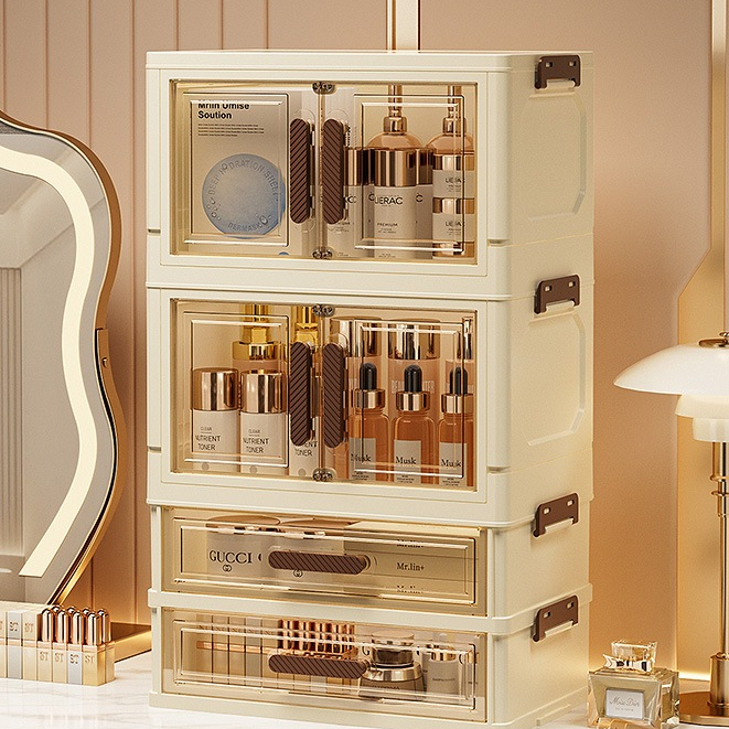 Kotak penyimpanan kosmetik desktop tahan debu dengan laci, meja rias, lemari ,rak penyimpanan masker wajah.Plastik Lemar
