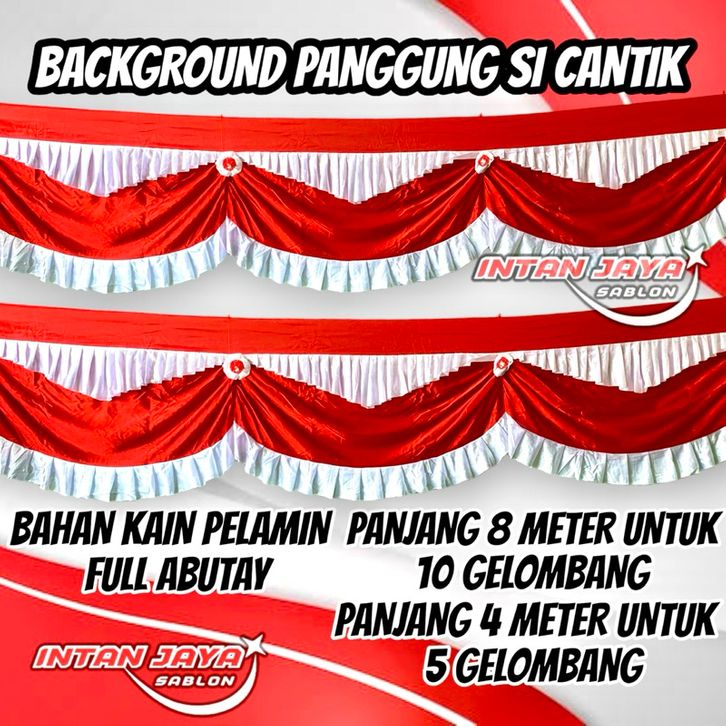 BENDERA MERAH PUTIH BACKGROUND REMPEL PANGGUNG CANTIK FULL ABUTAY PELAMIN 10 GELOMBANG