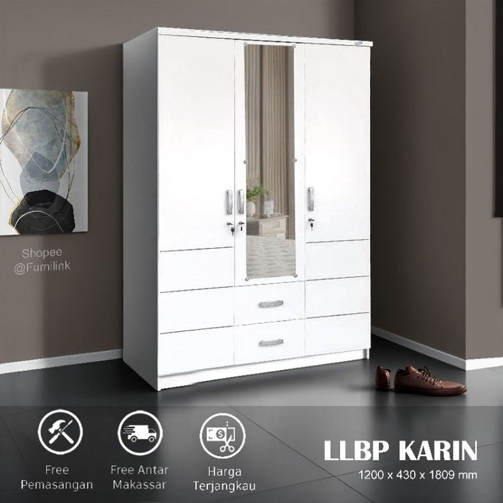 LLBP Karin - Lemari pakaian 3 pintu putih + 2 laci luar PROMO