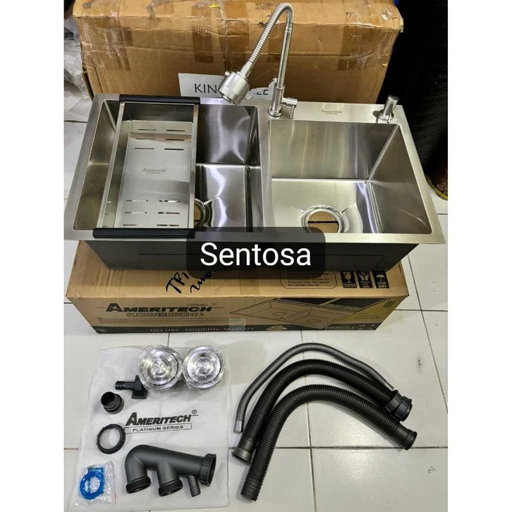 BAK CUCI PIRING 2 lubbang STAINLESS AMERITECH / KITCHEN SINK TEBAL 2 lubbang STAINLESS AMERITECH DISKON