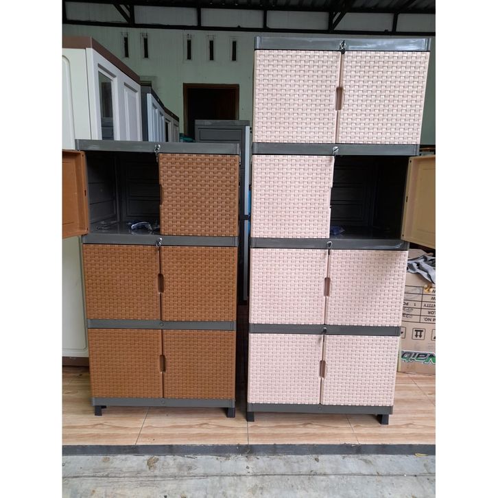Lemari Plastik Rattan 3/4 Susun Warna Cream/Putih/Coklat DISKON