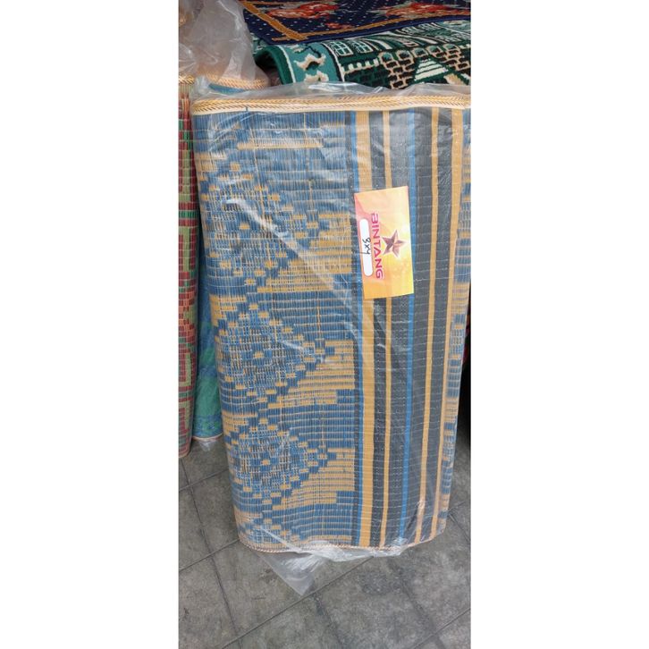 Tikar Plastik Rumput 3x4 Lipat Cap BINTANG Renda Kain Kuning mas Tengah Keliling PROMO