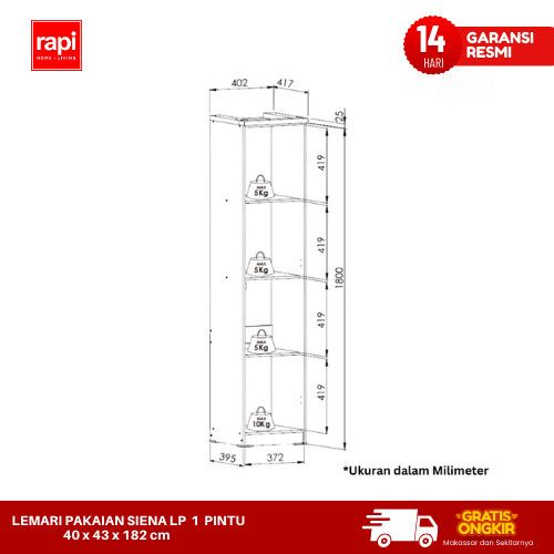 RAPI Lemari Pakaian Putih Satu Pintu / Lemari Baju / Siena LP 1P DISKON