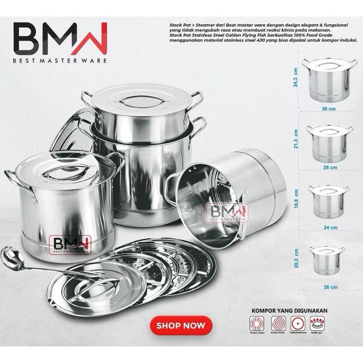 STOCK POT STEAMER ISI 4 SET BMW / PANCI KUKUS 4 SET STOCKPOT BMW / PANCI DANDANG STAINLESS STEEL STOCKPOT STEAMER STAIN